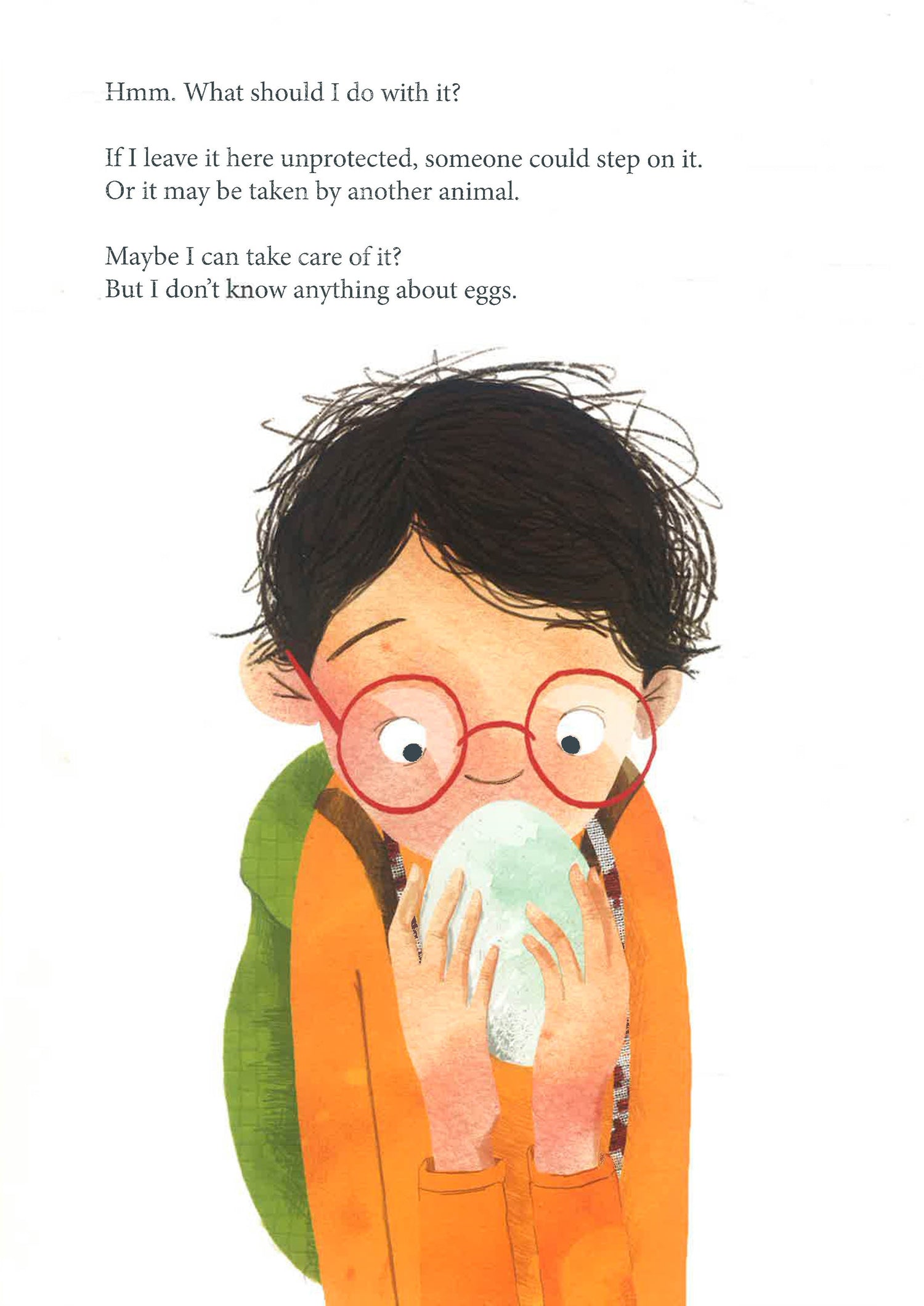 A boy discovers an egg and wonders what is inside. Could it be a turtle? A dinosaur? A new pet?