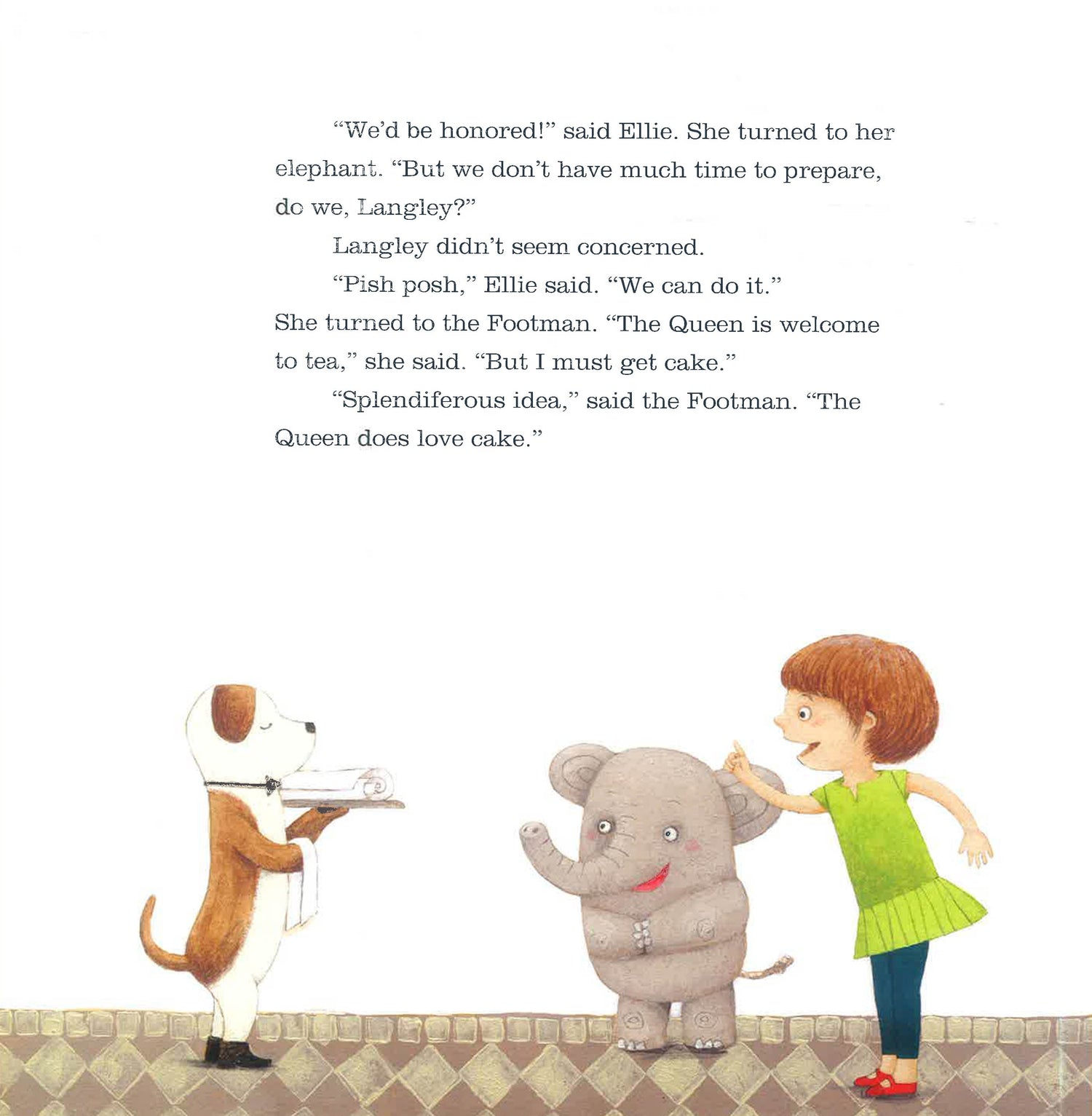 When Ellie finds out the Queen is coming to tea, she snaps to attention! After all, the Queen deserves the best: cake from Paris, tea from China, lemons from Italy… "Pish posh," says Ellie. "We can do it!"
