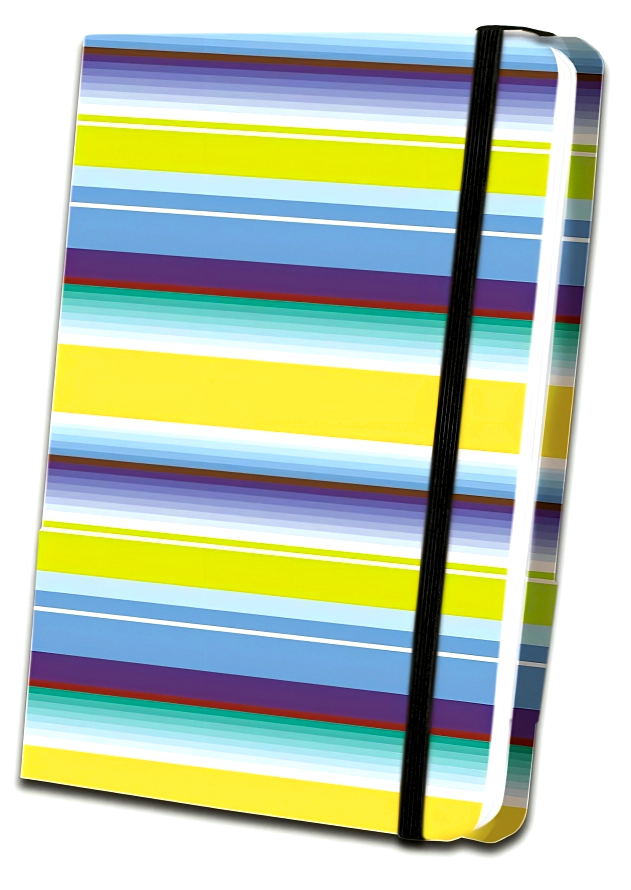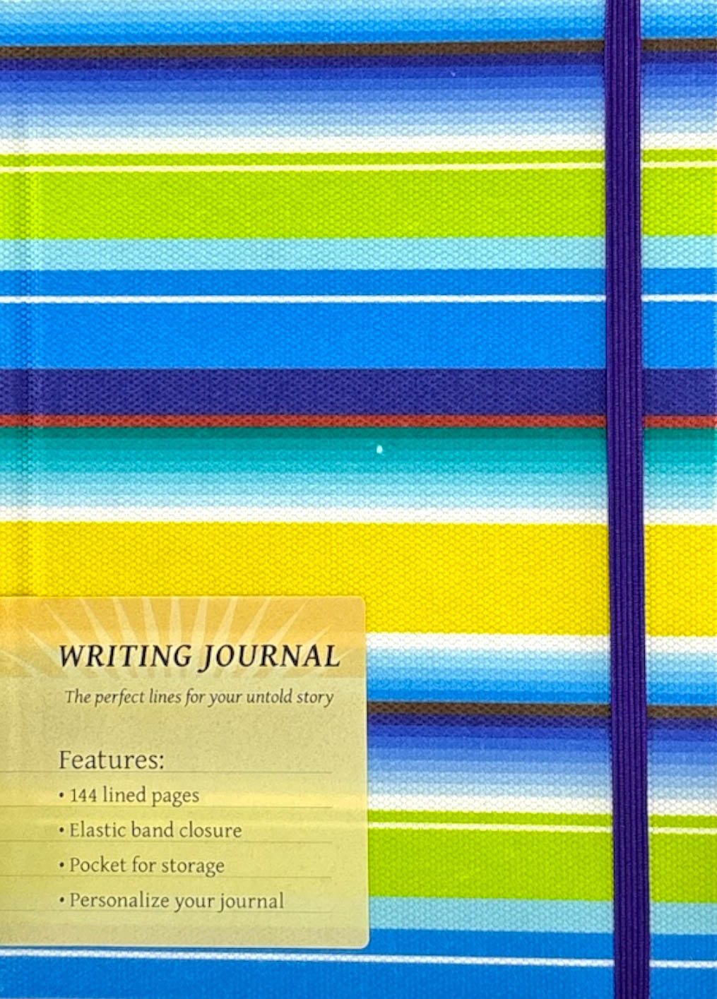 With a bold striped pattern on the canvas cover, this writing journal offers 144 pages to record all your latest adventures. Fill each lined space with thoughts, lists, daily activities, or your next best-seller! A pocket on the inside back cover keeps mementos in check, and the elastic band will hold everything together. It's compact and fits easily in a purse or briefcase, so you’ll never be without a place to jot things down.