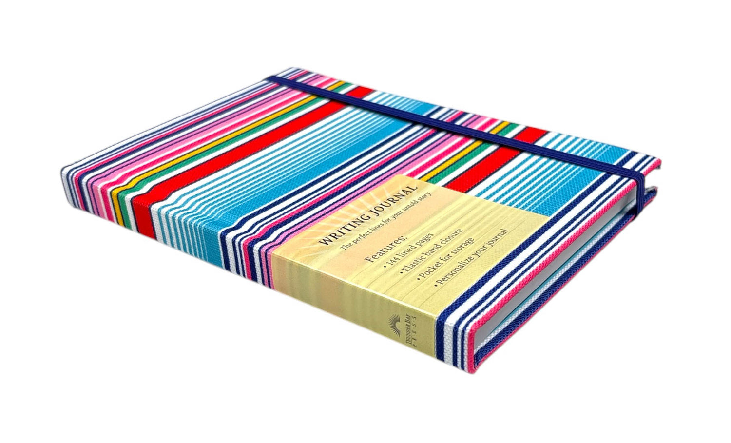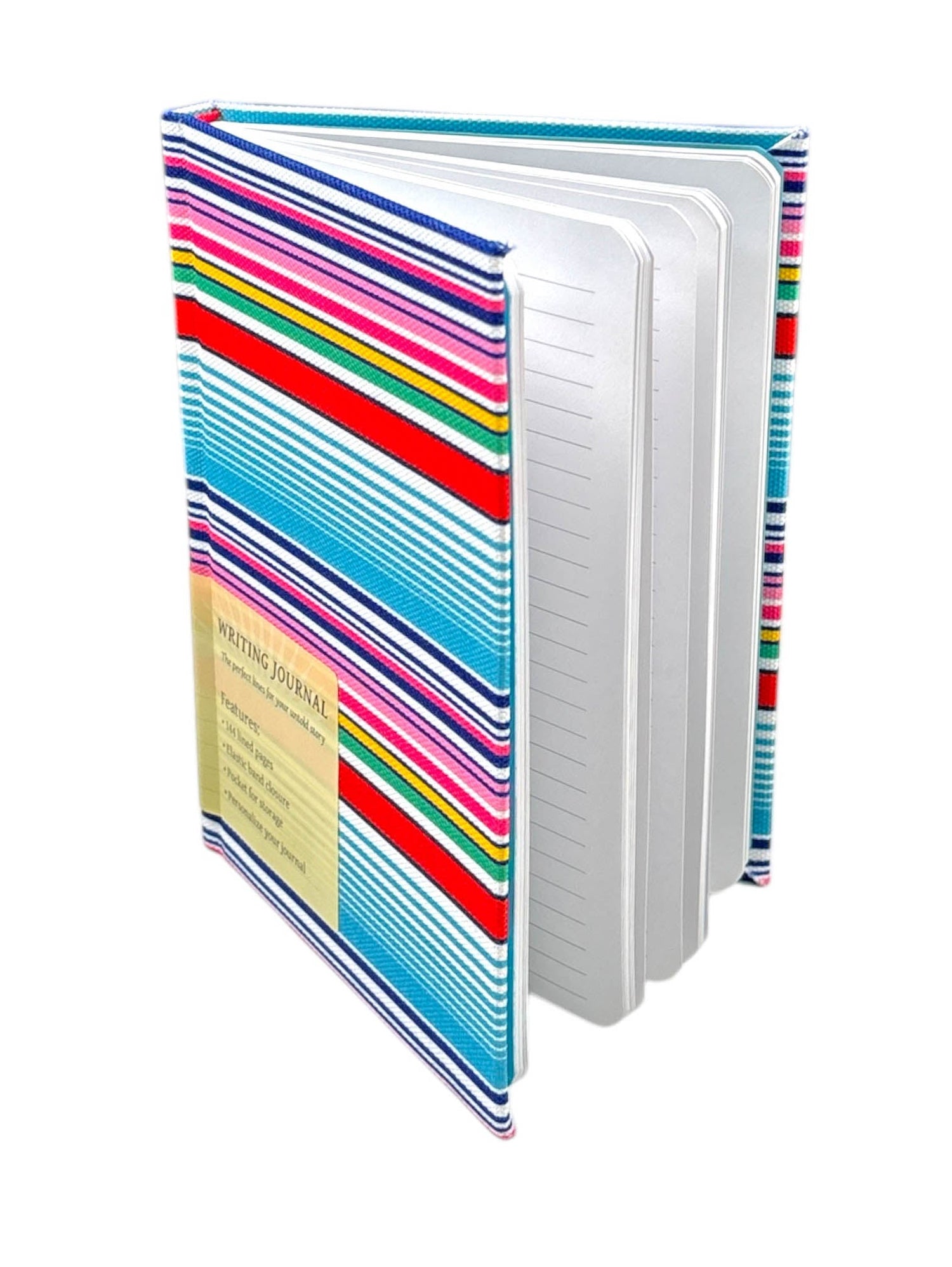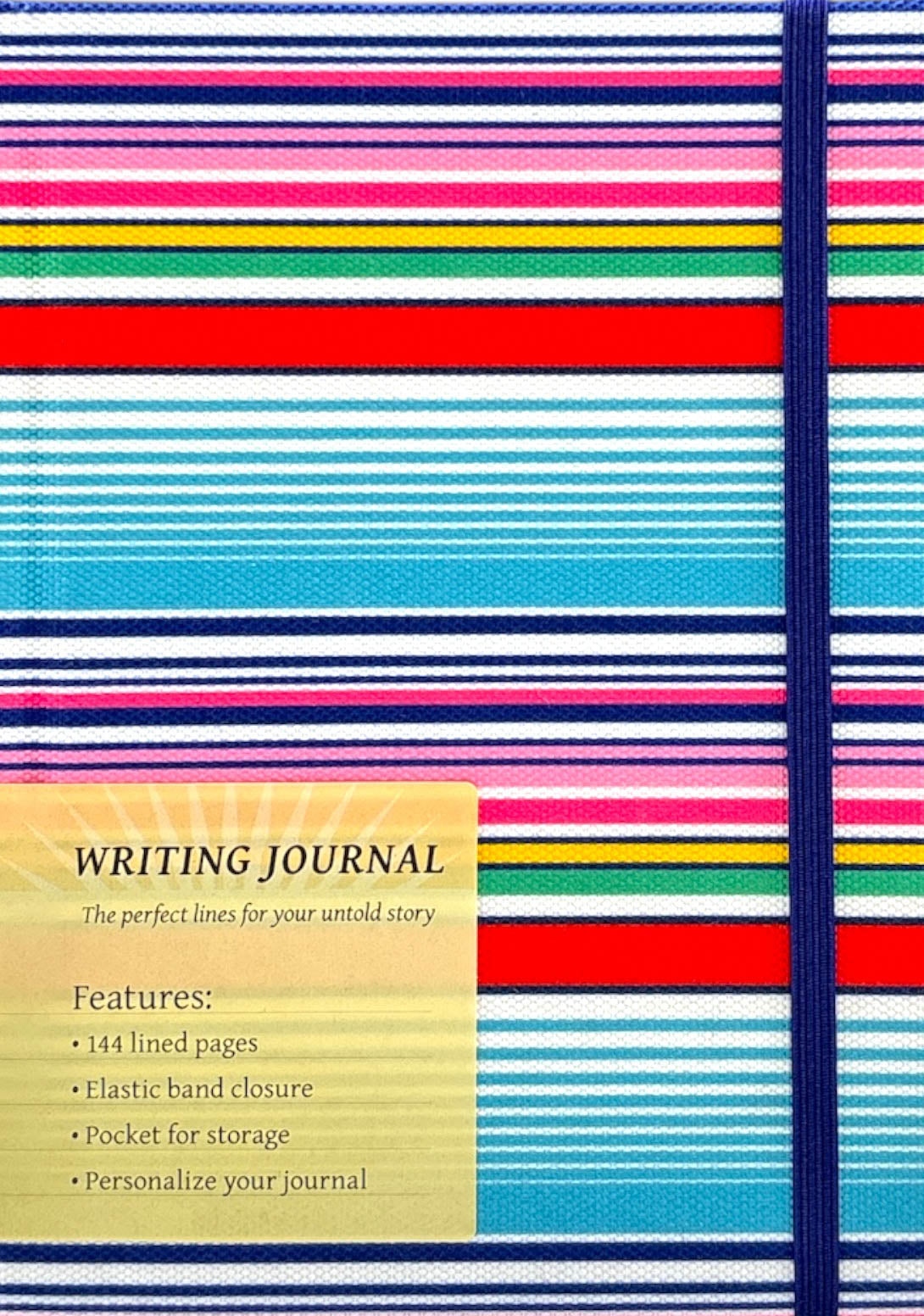 With a sophisticated striped canvas cover, this writing journal offers 144 pages to record all your latest adventures. Fill each lined space with thoughts, lists, daily activities, or your next best-seller! A pocket on the inside back cover keeps mementos in check, and the elastic band will hold everything together. It's compact and fits easily in a purse or briefcase, so you’ll never be without a place to jot things down.