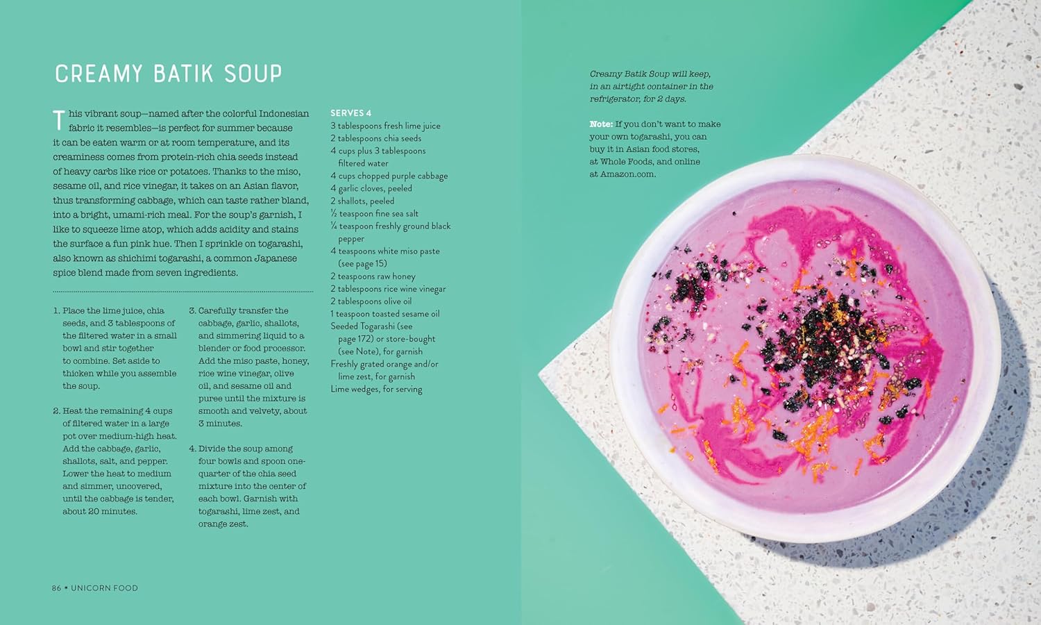 Filled with dazzling full-color photographs, and published in a package as special as the dishes themselves, Unicorn Food is a cookbook of real beauty, in the look, in the recipes, in the spirit of the food itself.
