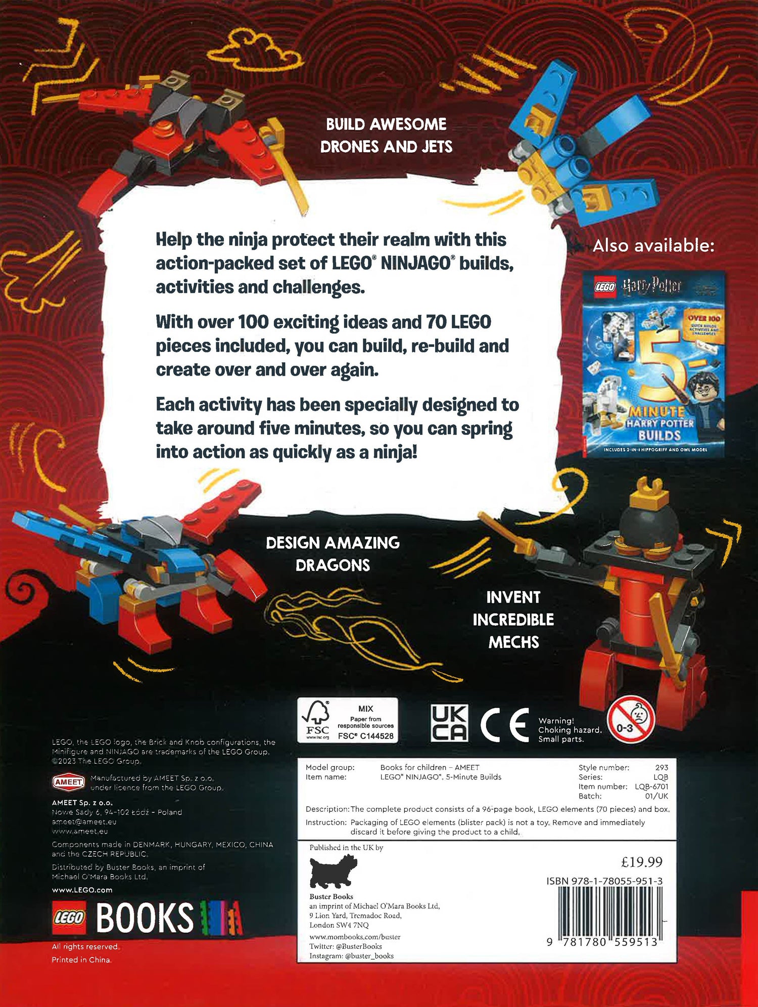 From drones and jets to dragons and mechs, each exclusive LEGO NINJAGO model has been specially designed to take around five minutes to build, so your LEGO builds spring into life as quickly as a ninja!