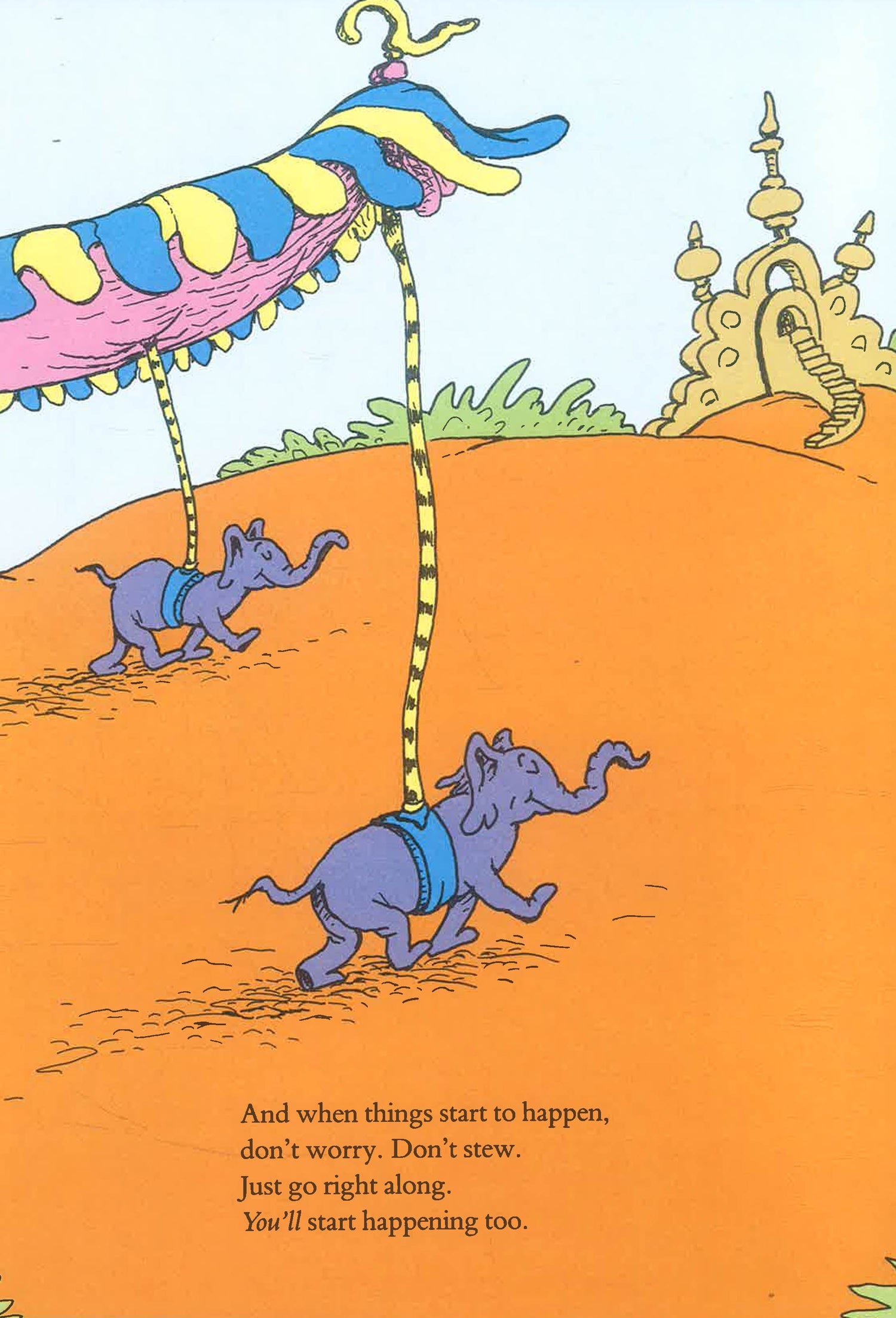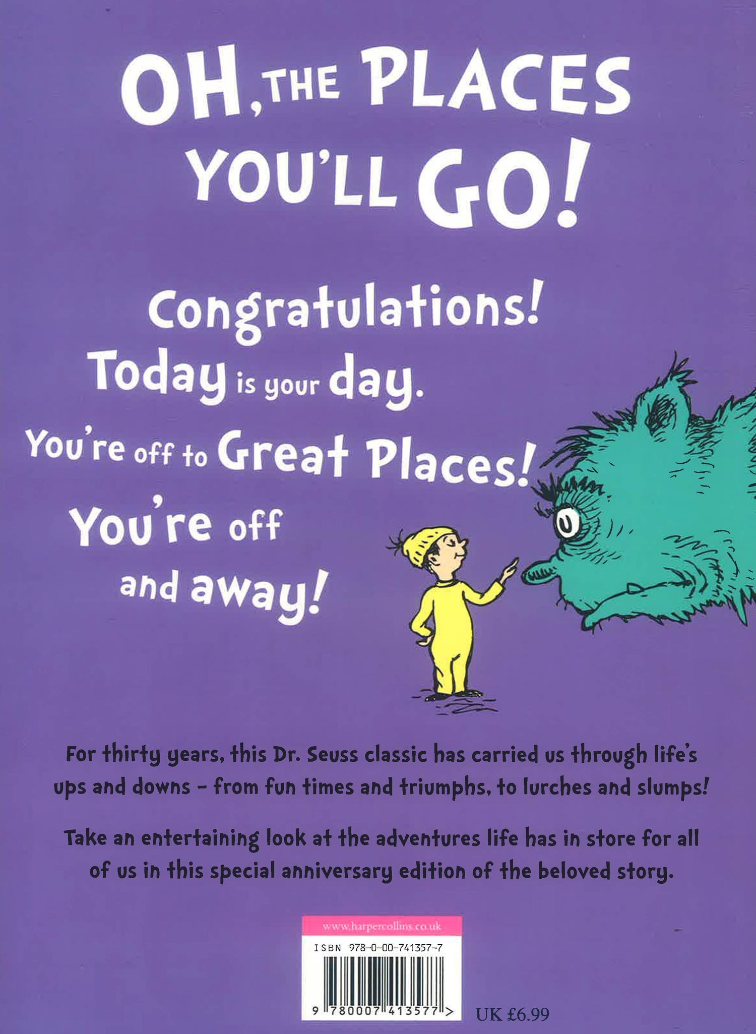 In this classic Seussian tale, the good doctor primes his readers against all the little mishaps and misadventures that can befall even the best of us -- from bang-ups and hang-ups to lurches and slumps -- encouraging us to take life in our stride! Now in picture book format. This title is perfect for reading with children and as a gift for any life-changing occasion such as graduation, changing or leaving school etc. With his unique combination of hilarious stories, zany pictures and riotous rhymes, Dr. Seuss has been delighting young children and helping them learn to read for over fifty years. Creator of the wonderfully anarchic Cat in the Hat, and ranked among the UK's top ten favourite children's authors, Seuss is firmly established as a global best-seller, with nearly half a billion books sold worldwide.