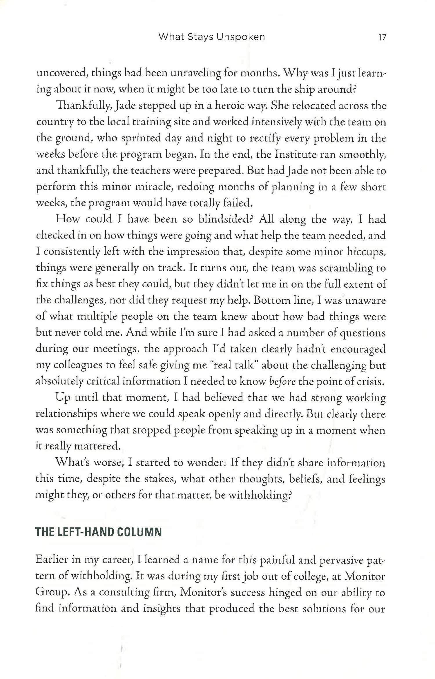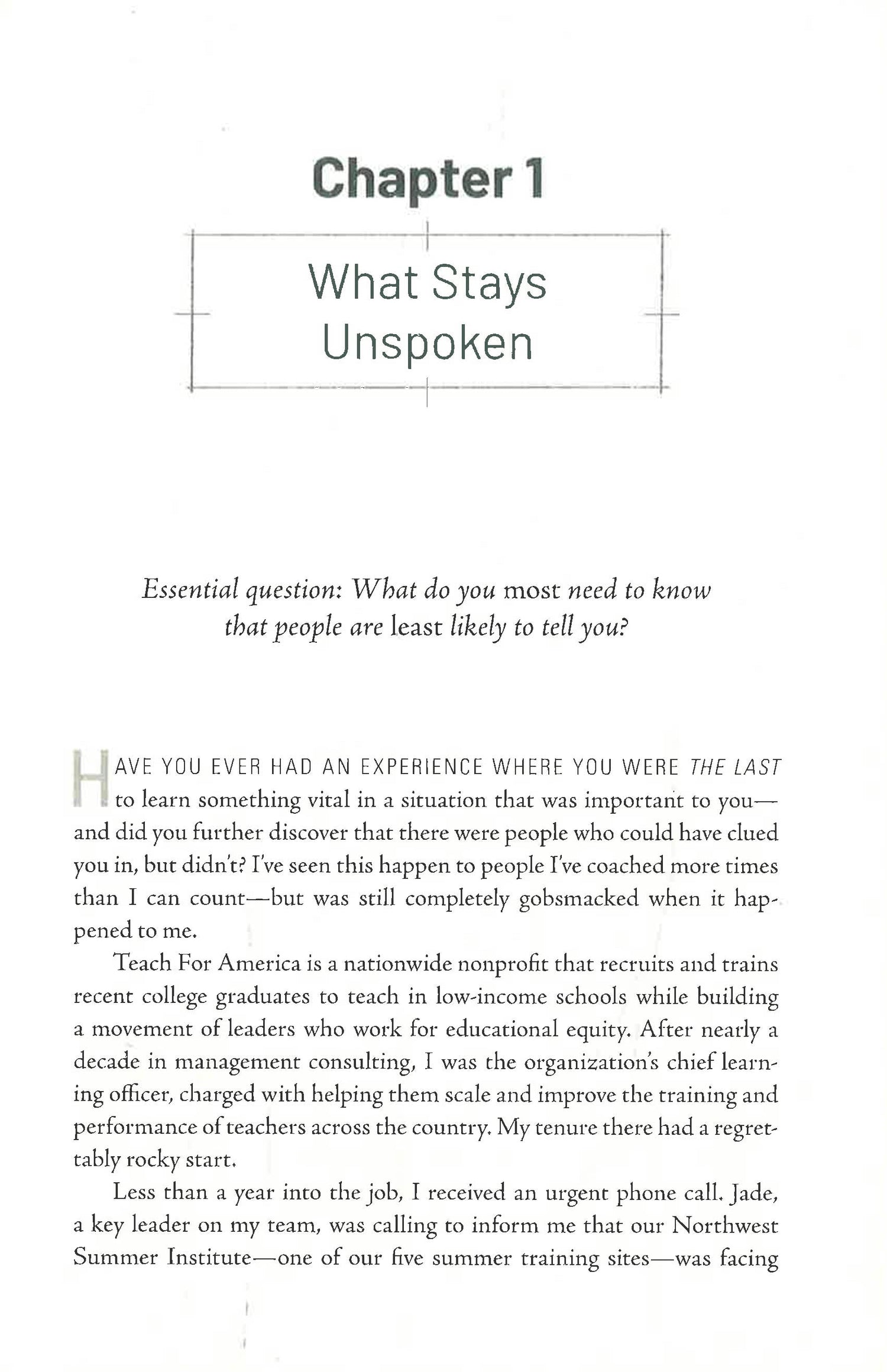 In Section I, Wetzler reveals the most common things that people think and feel but often keep to themselves, as well as the key reasons why they choose to withhold information that could be valuable to you and your organization.