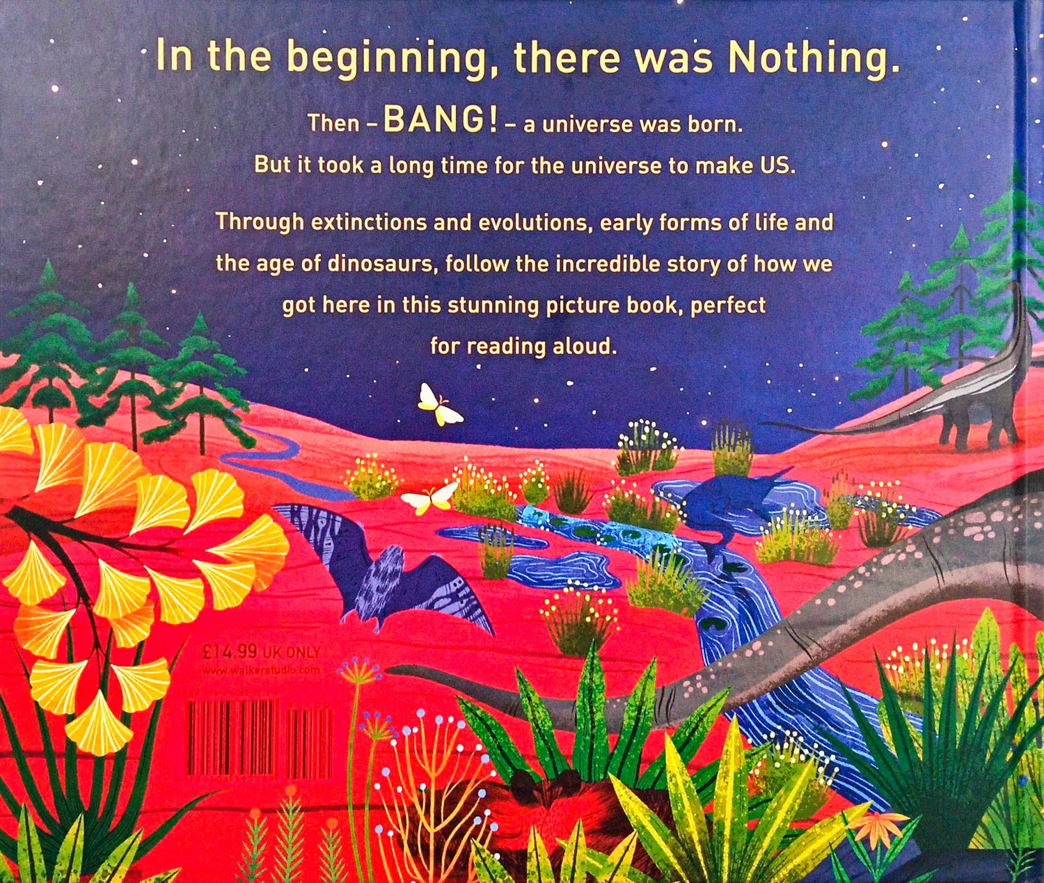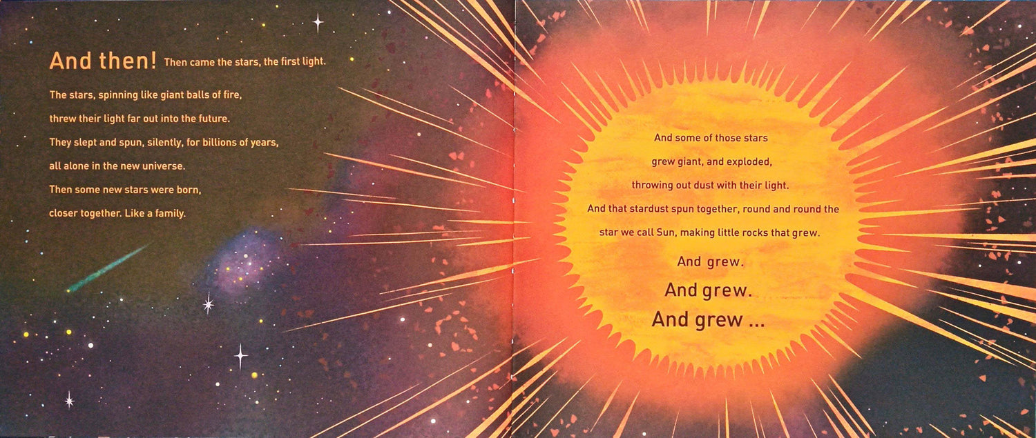 "Follow the journey from the very beginning of our planet to the arrival of humans, in an energetic and engaging picture book. In the beginning there was nothing, and then, BANG!, the universe was born. Discover the incredible story of billions of years of life on Earth, from the first tiny cells, through the age of dinosaurs and prehistoric beasts, all the way to the first humans. With playful text and stylish illustrations, this awe-inspiring history is perfect for curious young minds"--Publisher's description.