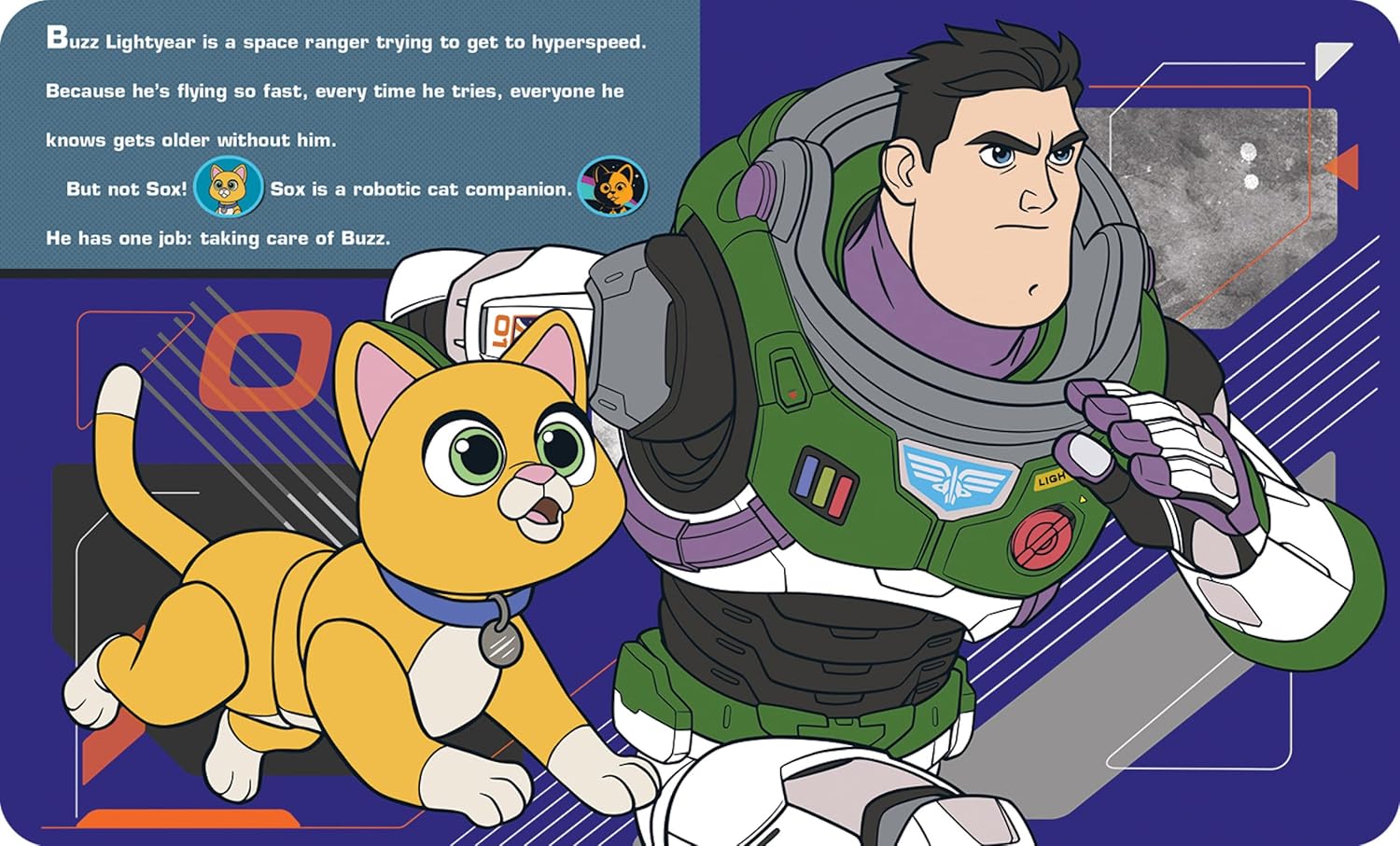 Join Buzz Lightyear and his robotic cat friend Sox on a sci-fi adventure with this book and wristband set! While you read the story, put on your wristband and press 5 buttons to hear exciting sounds, including the voice of Sox!