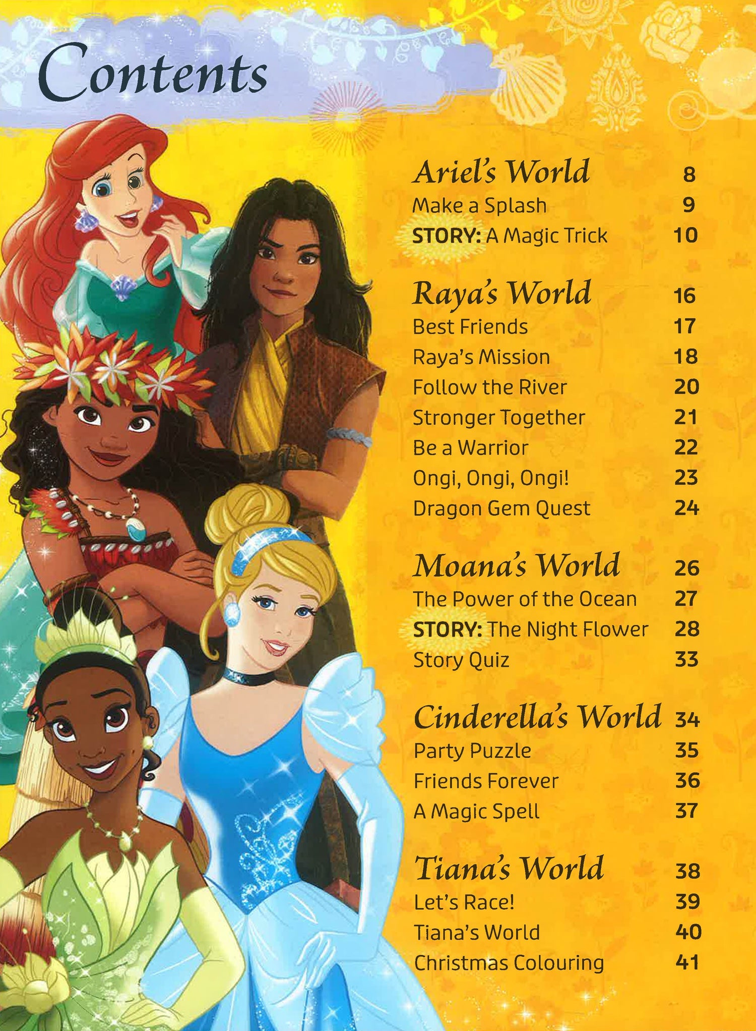 Including ten of your favourite Disney Princesses: Ariel, Raya, Moana, Cinderella, Tiana, Rapunzel, Belle, Mulan, Aurora and Jasmine, it features three inspiring stories: