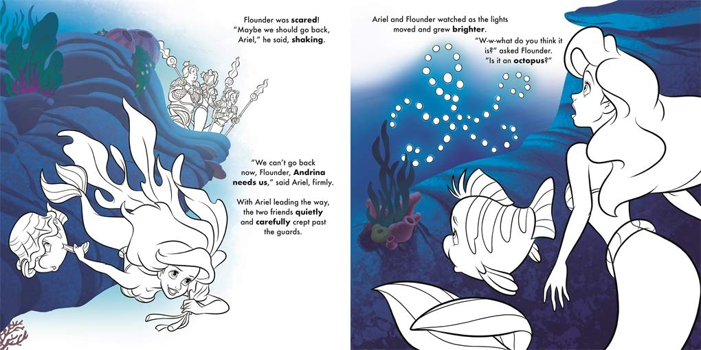 When mysterious ghost lights appear in Atlantica, it's up to Ariel to solve the mystery. Can you help her in her quest? Colour in the story as you go in this fun storybook with 6 colouring pencils included!