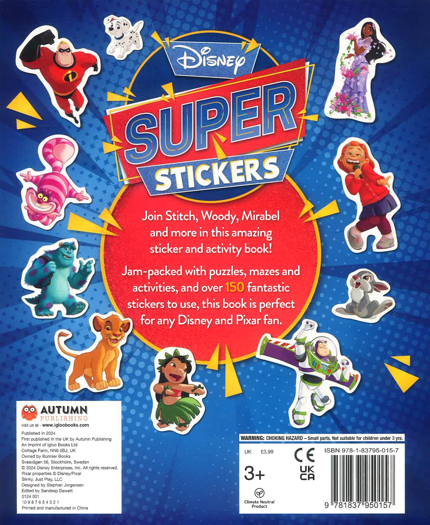 !Join Stitch, Woody, Mirabel and more in this amazing sticker and activity book! Complete fun activities, decorate amazing colouring pages and more.