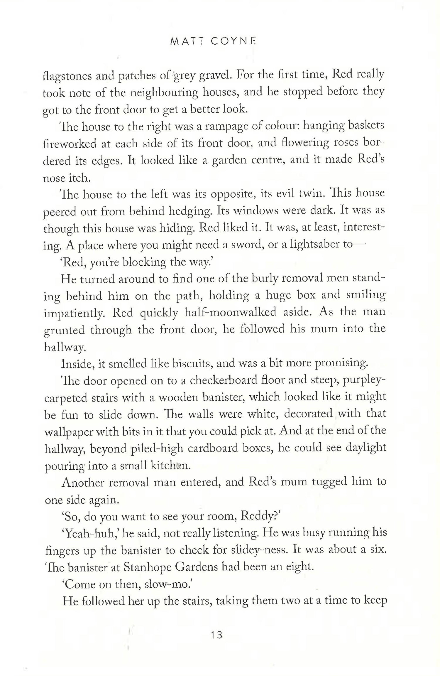 Red is six. A boy struggling to adjust to the separation of his mum and dad, a new school, and the demonic school bully. Red is curious, smart, he never stops talking, and he's got a trampoline.