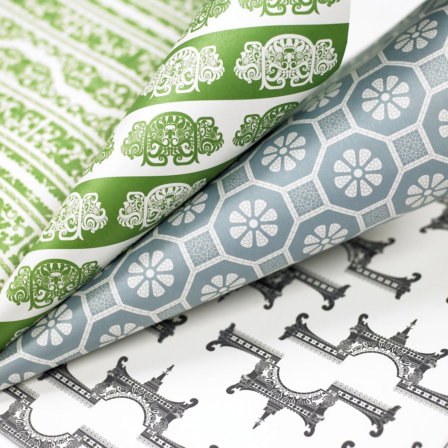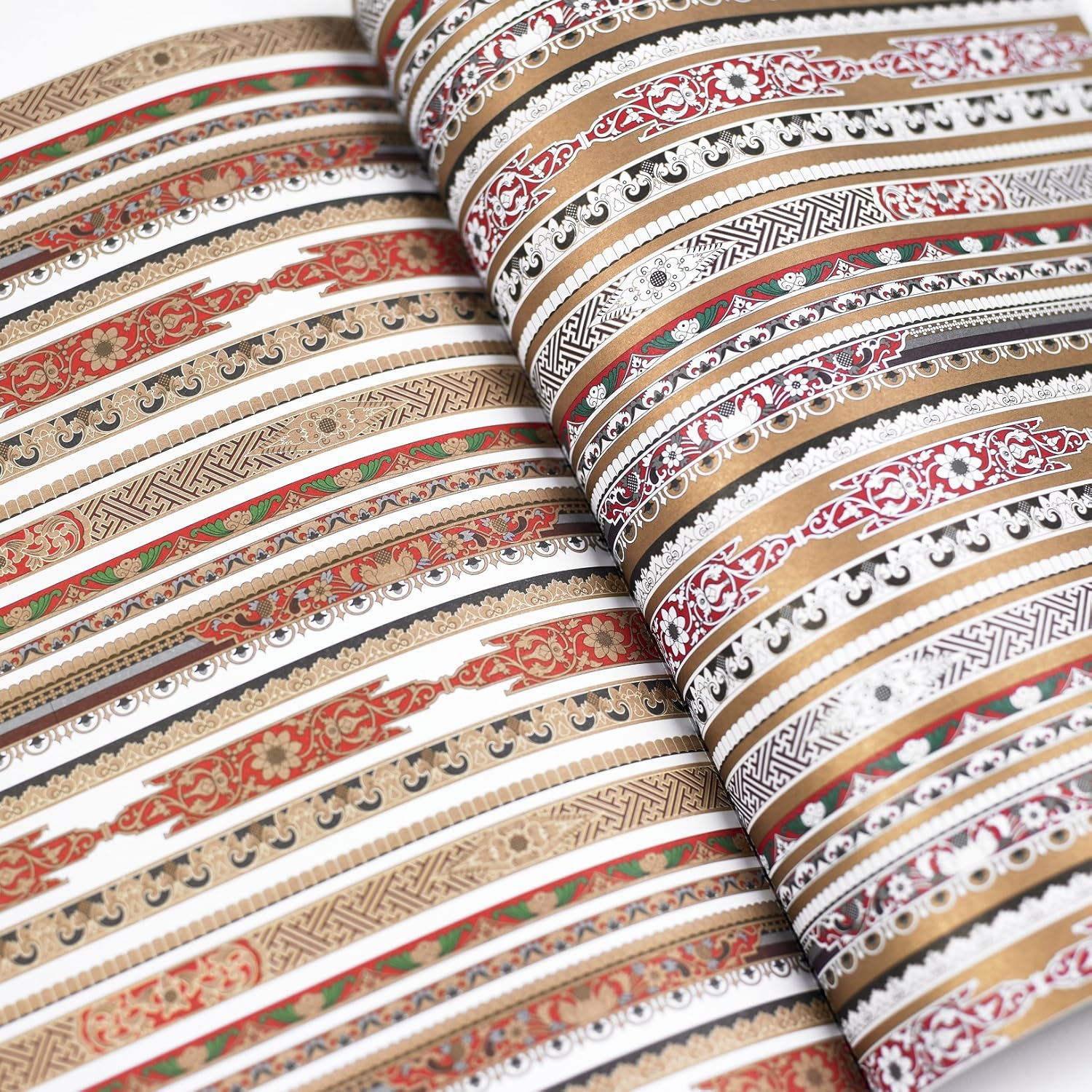 PEPIN gift and creative paper books all contain 4 pages of introduction and 12 large sheets of very high-quality wrapping paper. They can easily be removed from the books by tearing them along a perforated line. The sheets are folded to fit into the book; when removed and opened they measure 50 cm x 70 cm (19 inch x 27 inch; a standard size for gift wrapping papers). Depending on the theme, we have selected a suitable light-weight paper quality. For example, papers with designs in gold, silver or bronze are printed on silky art paper on which the inks show to their best advantage. Designs with an antique or hand-made feel are printed on high-quality creamy offset paper. PEPIN papers make your gift package look very special. In addition, our papers are suitable for all sorts of craft projects. Each volume contains 12 different papers of exceptional designs.