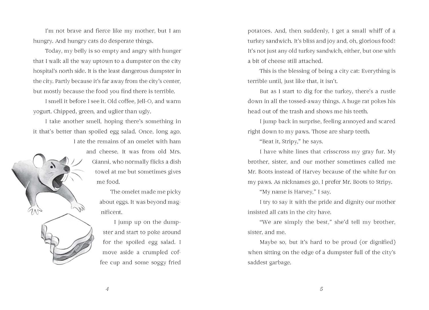 For city strays, life on the streets can be unforgiving. When every day is filled with territorial animals, fast-moving traffic, and aggressive boys with sticks, it takes more than a little courage to get by. Harvey, a stray cat struggling to survive, is searching for a home of his own—one that's safe and dry, with a view of the sky. But when the unexpected kindness of one woman saves him from the harsh city elements, he is forced to rethink what makes a home and who, if anyone, he can depend on. With the sage advice of Chester the dog and three talkative sparrows, Harvey will learn that trusting and helping others are some of the bravest things you can do.