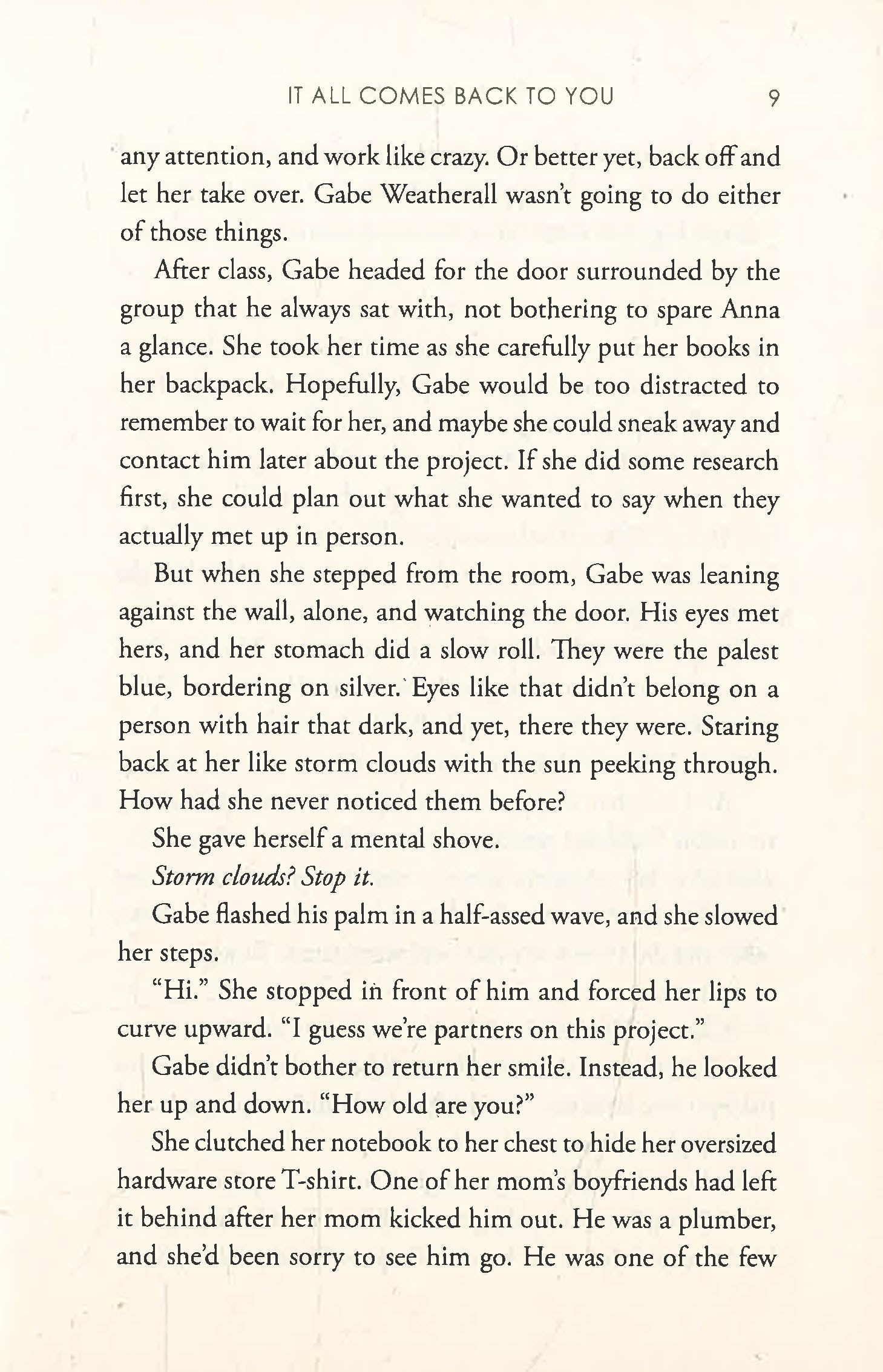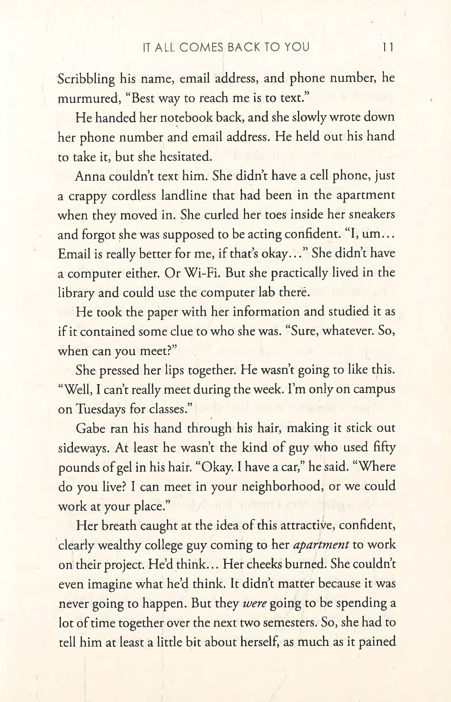 Gabe is top of the class, in a fancy fraternity, and has a big, perfect, warm-hearted family. He is everything Anna is not. Their connection is undeniable. His silver-blue eyes pierce right through her, and he makes her laugh in ways she never thought possible. But Anna would do anything to stop Gabe from discovering her darkest secret, and the real reason she goes home every night to a cold, silent apartment…