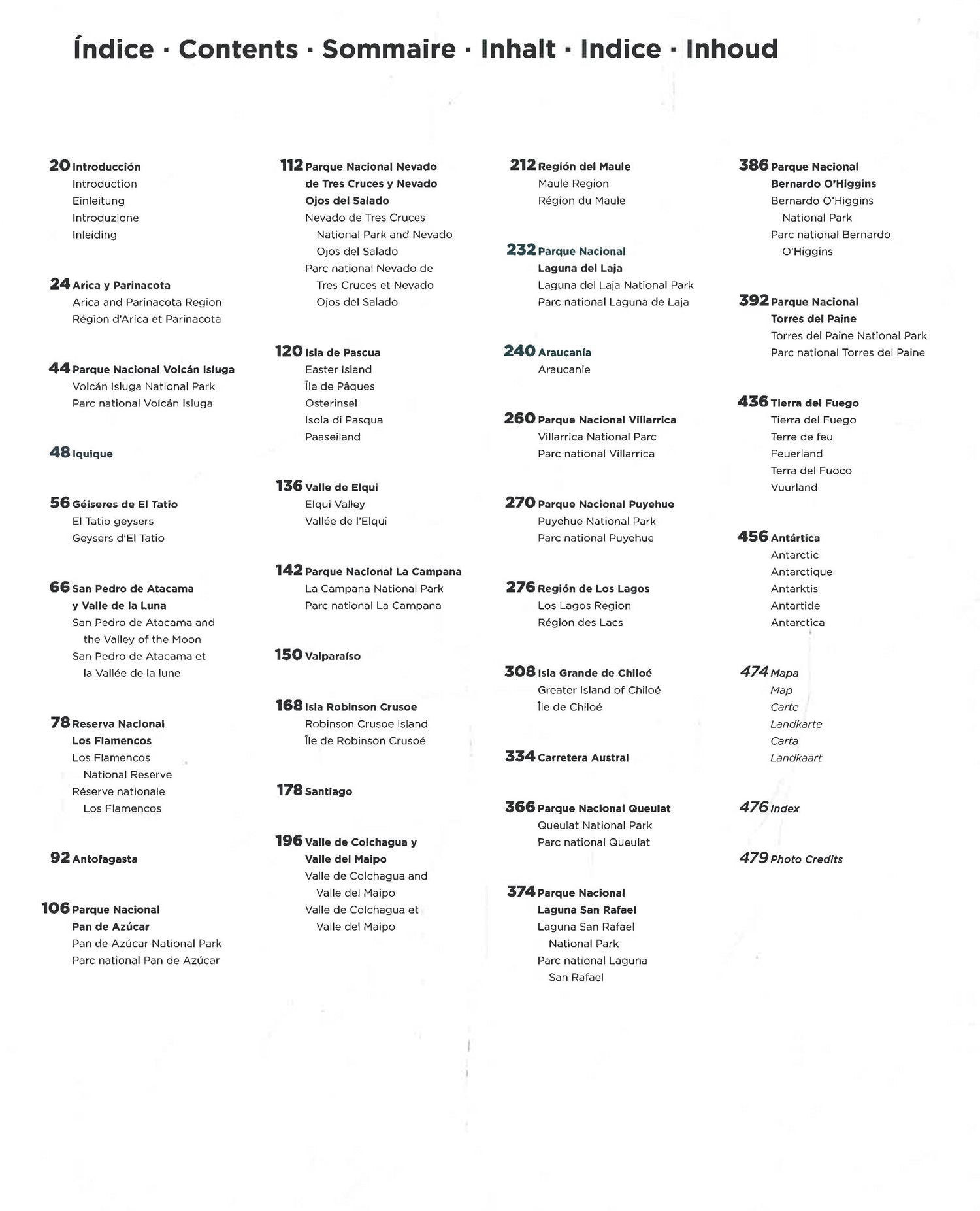 Chile stretches along the Pacific coast of South America, west of the Andes, and is the longest country in the world from north to south. The contrasting landscape offers the Atacama Desert to the north, the driest area on the planet, and to the south, tropical rainforests, lake landscapes, and glaciers. Over 400 photographs showcase this country from north to south with its fascinating world of desert landscapes, volcanoes, glaciers, and rich flora and fauna.