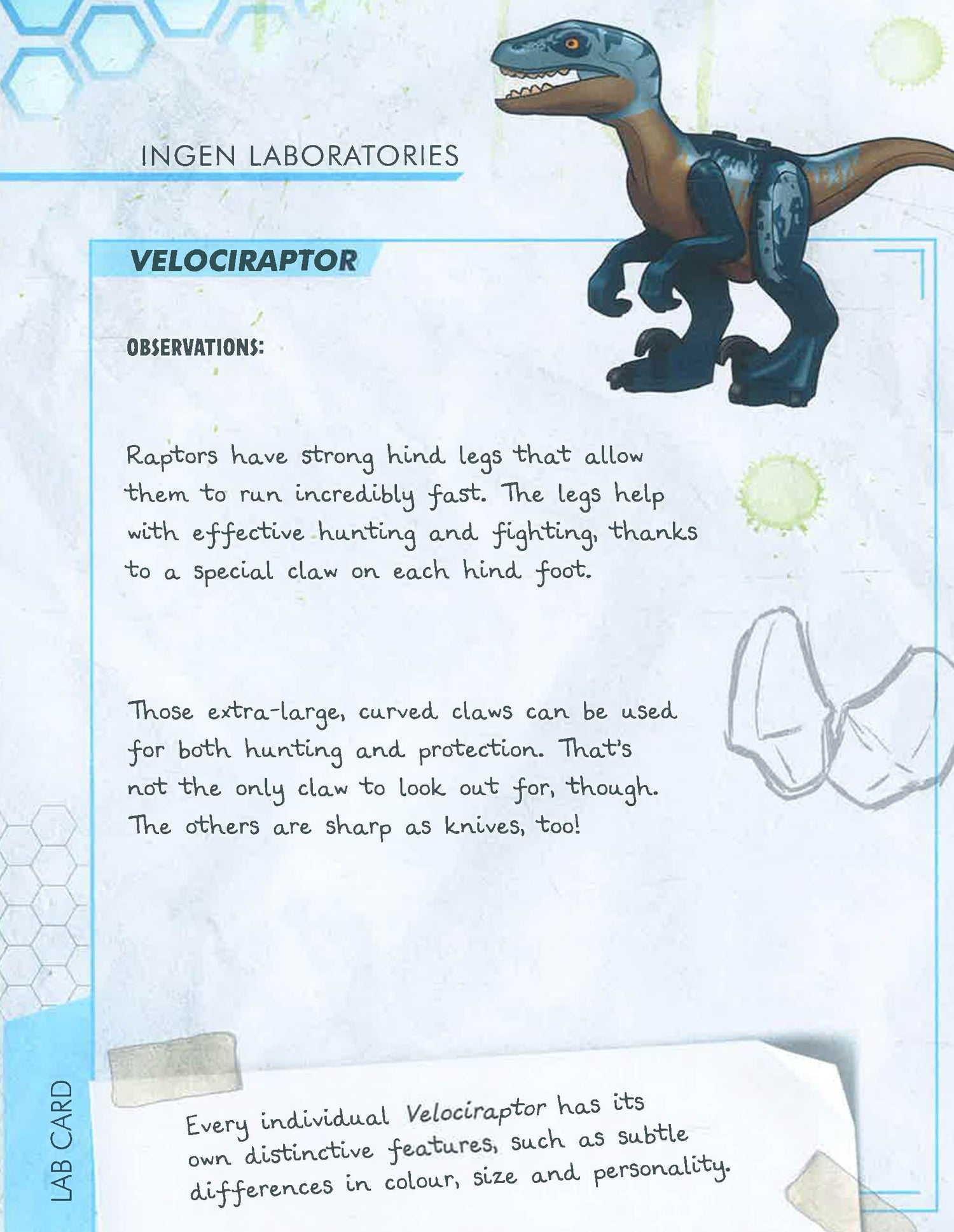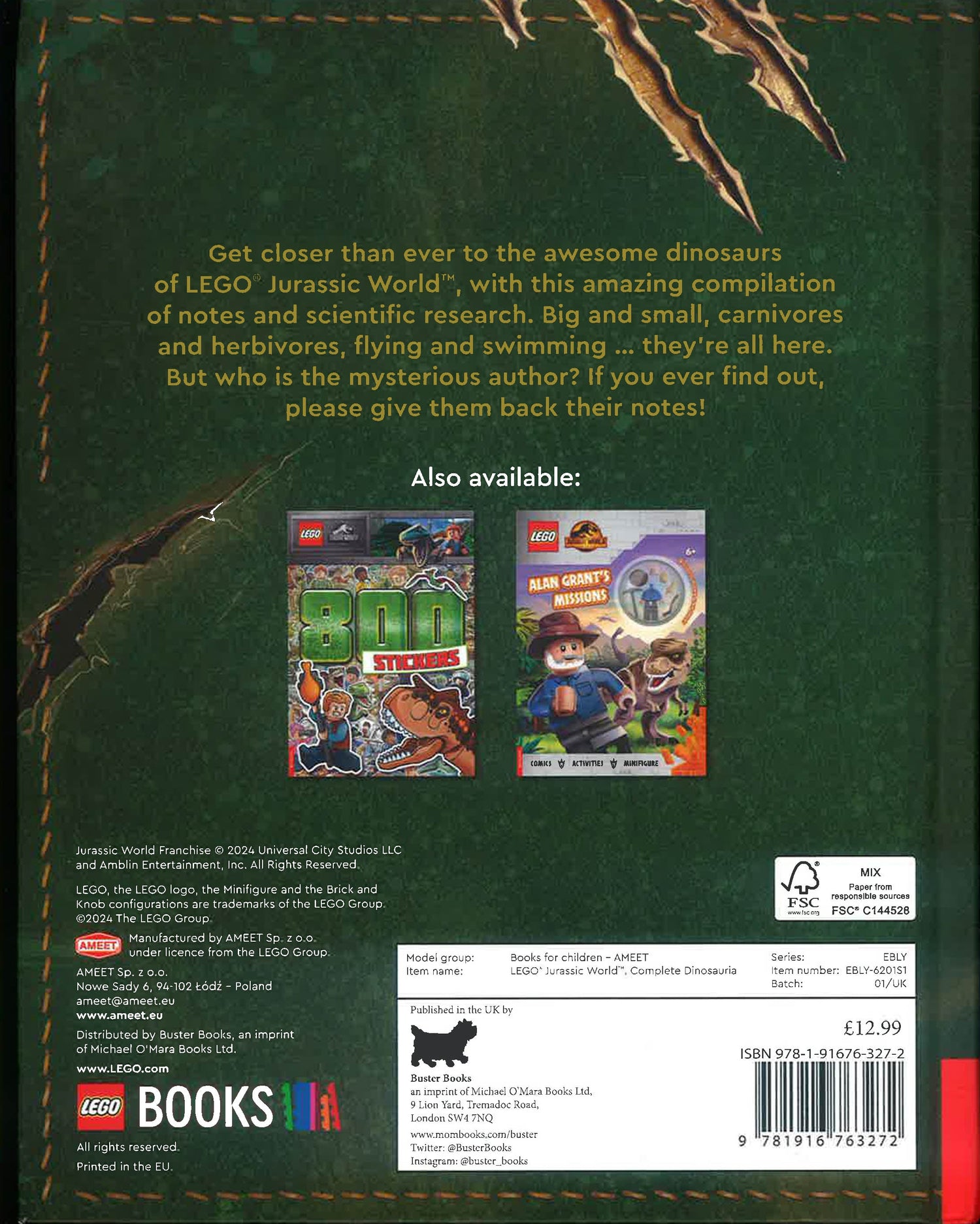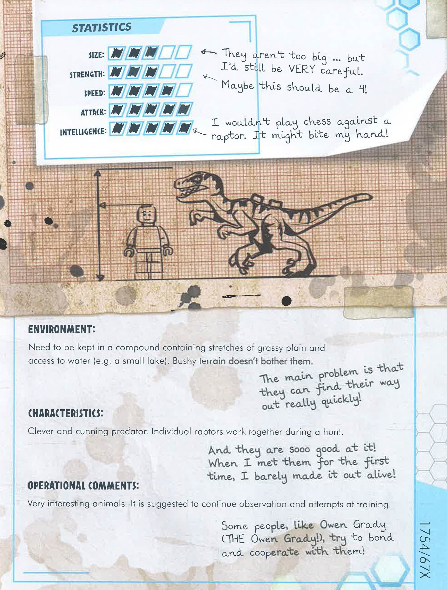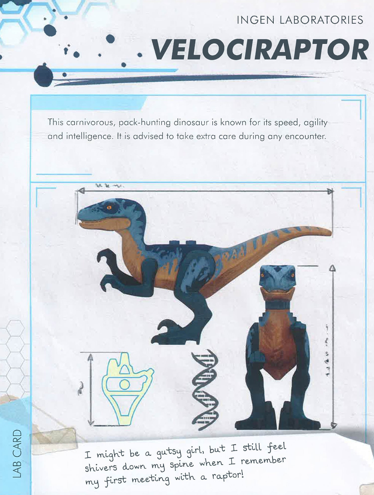 Get closer than ever to the awesome dinosaurs of LEGO® Jurassic World™, with this amazing compilation of notes and scientific research. Big and small, carnivores and herbivores, flying and swimming … they’re all here. But who is the mysterious author? If you ever find out, please give them back their notes!