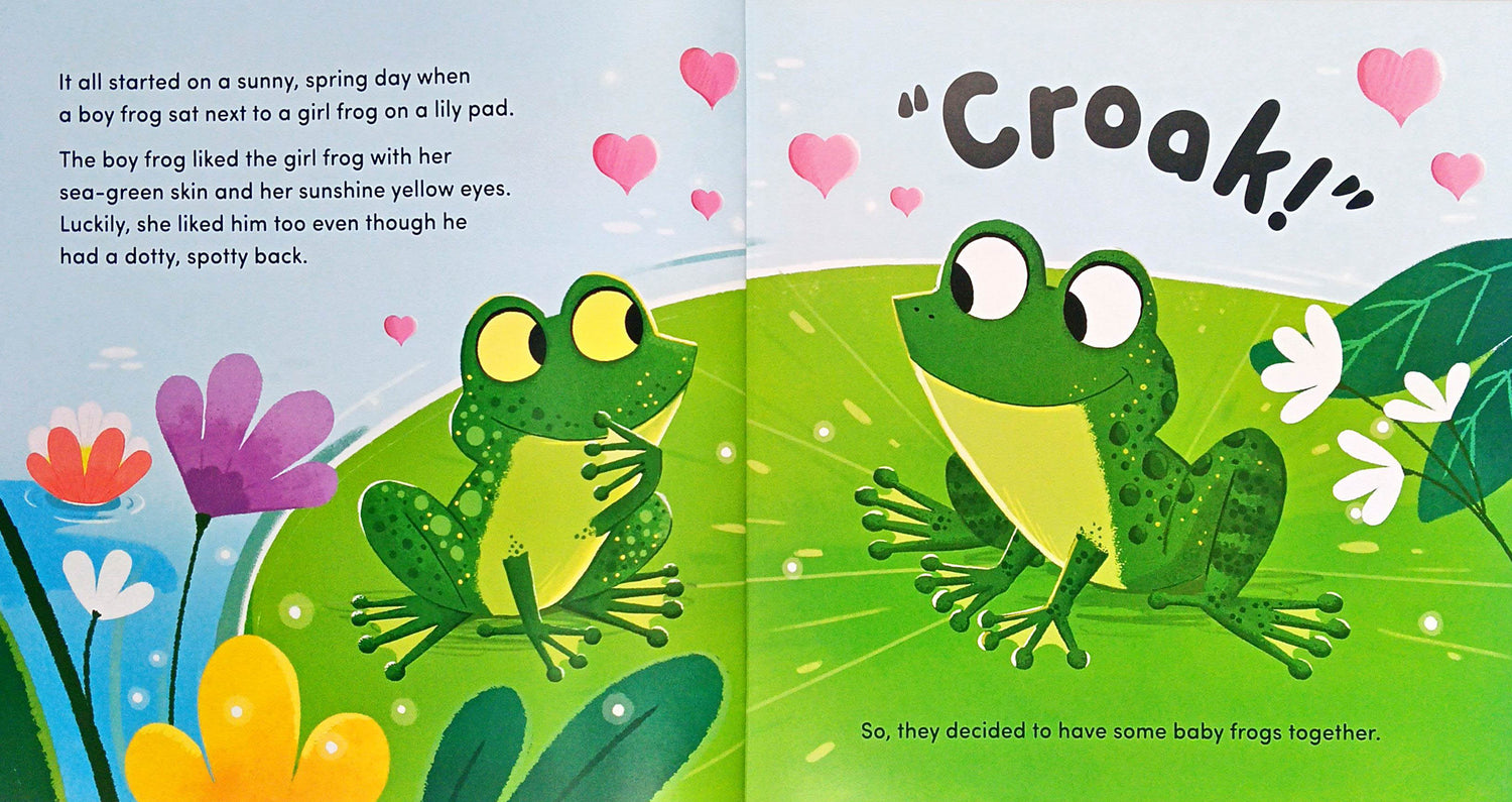 Join Frog on an adorable adventure in the pond, full of facts about the different life stages of frogs - from egg to tadpole to froglet to frog - and watch the life cycle begin all over again.