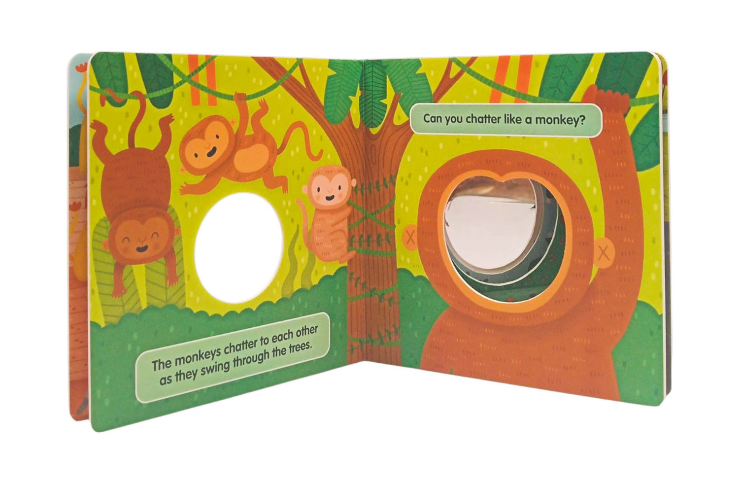 Look in the mirror and do your best funny faces in this clever learning book about animals.