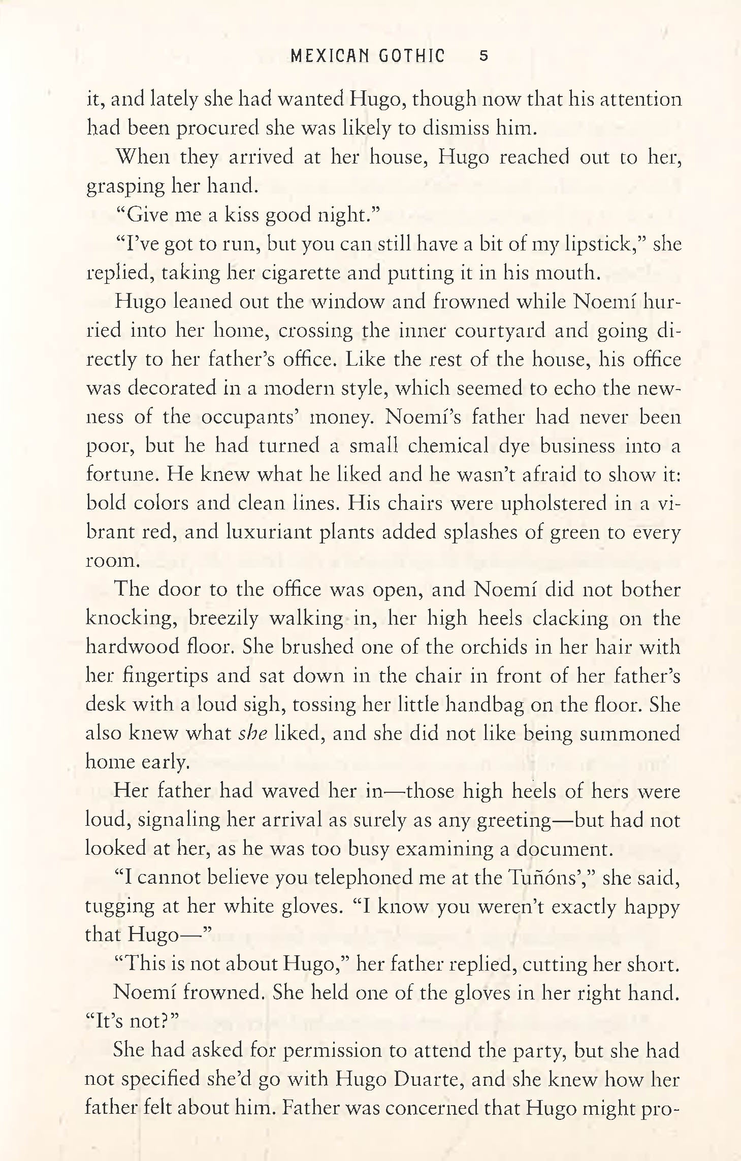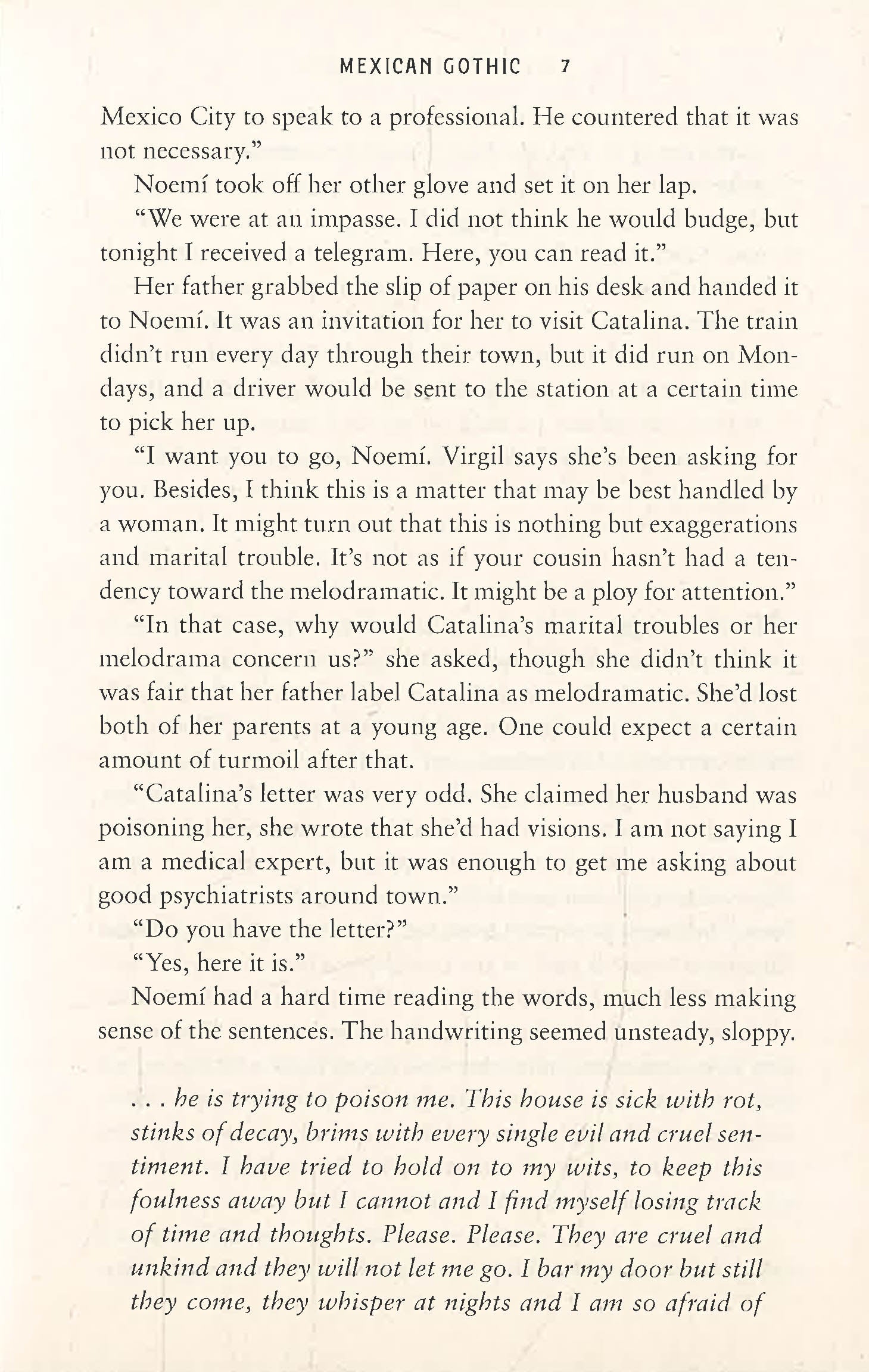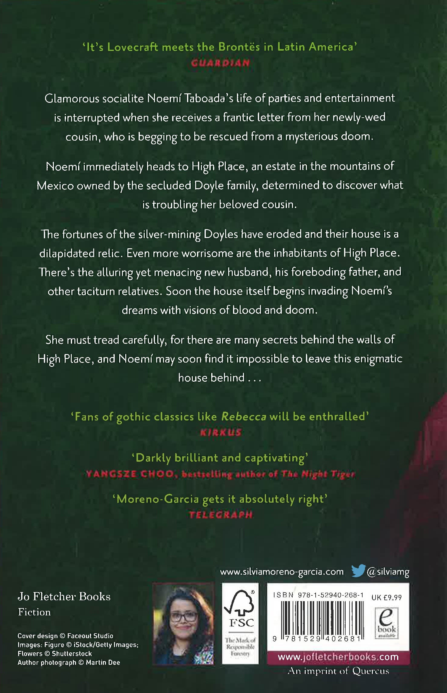 Noemí's more suited to cocktail parties than amateur sleuthing, but she heads immediately to High Place, a remote mansion in the Mexican countryside, determined to discover what is so affecting her cousin. She's tough and smart, with an indomitable will, and she is not afraid: not of her cousin's new husband, who is both menacing and alluring; not of his father, the ancient patriarch who is fascinated by Noemí; and not of the house itself, which begins to invade Noemi's dreams with visions of blood and doom.