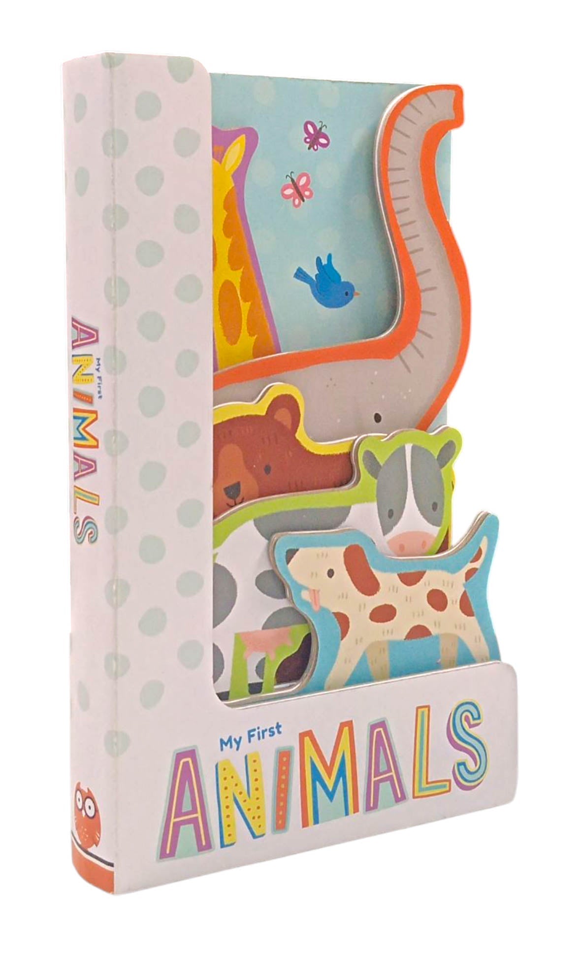 Fun learning board books Each page die cut to a different shape, creating a family of fun characters. Learn first animal words and noises, with chunky pages shaped like super-cute animals