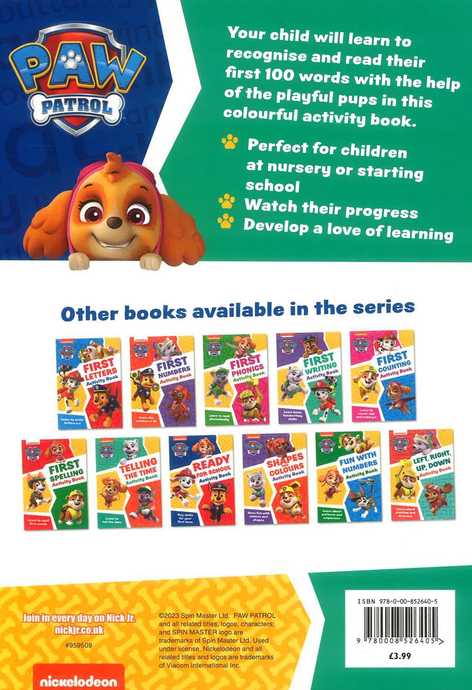 Children aged 3-5 are introduced to reading their first words alongside their loveable and playful PAW Patrol friends.