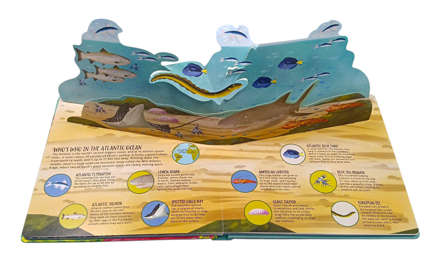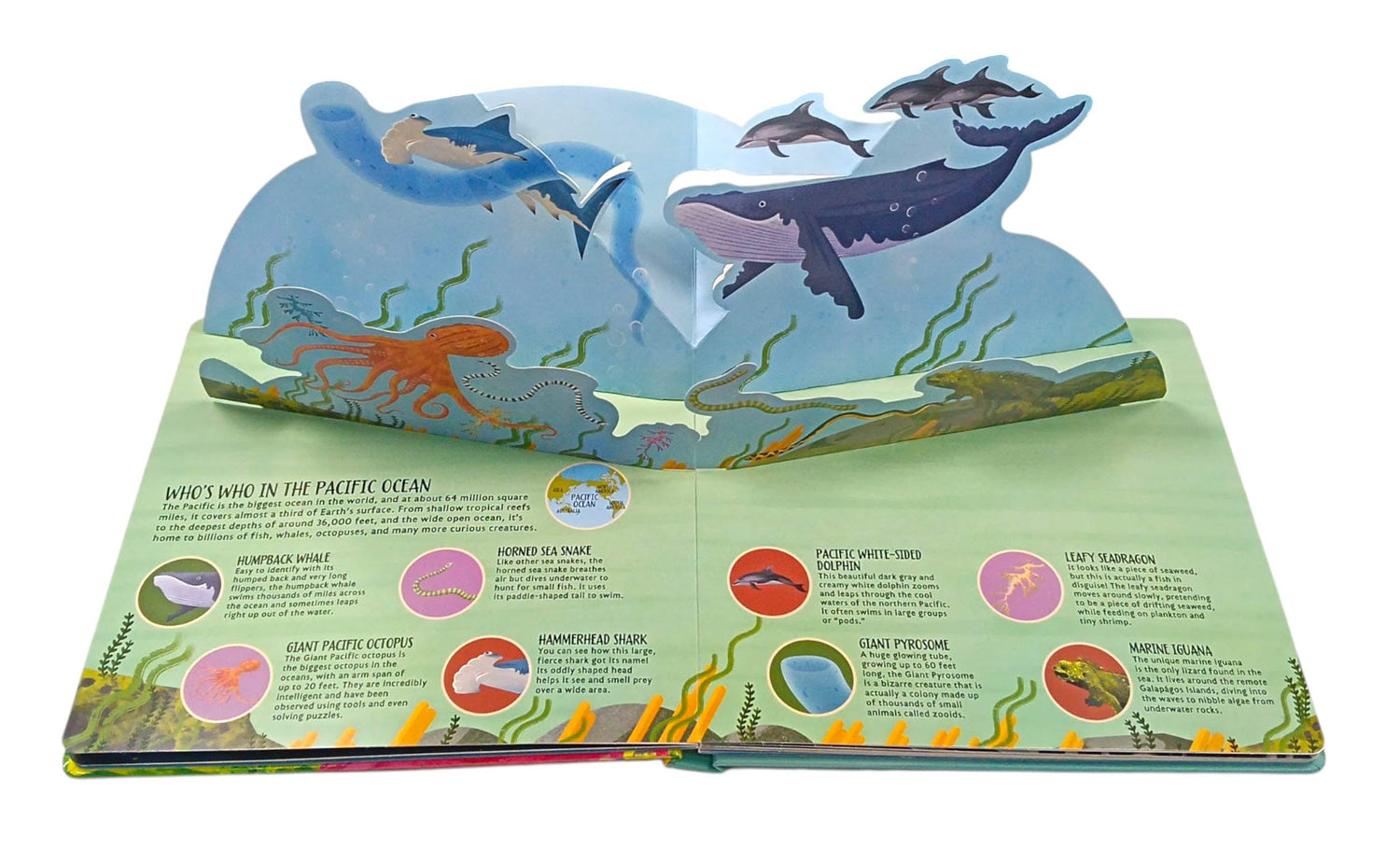 Meet the incredible animals of the ocean as they appear in five beautiful pop-up aquatic scenes. Dive into a who's who of the world's oceans, from the blue whale to the blobfish and the sea pig to the saltwater crocodile. Find out all you need to know about these truly fascinating animals, like how they eat, sleep, and survive in the deep.