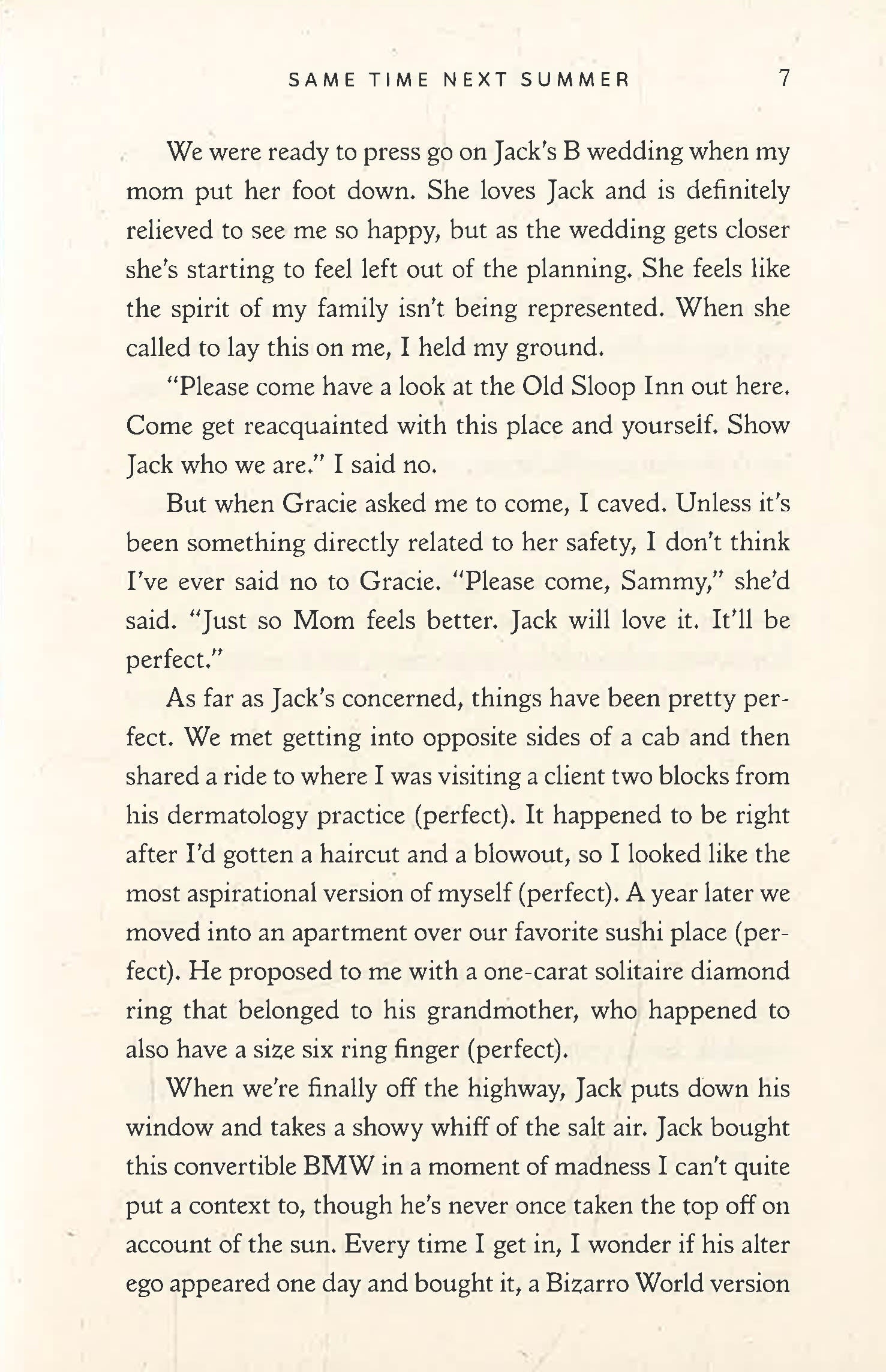 On paper, Sam's life is on track. She has the perfect fiancé, a stable job, and has returned home to pick out a wedding venue near her family's Long Island beach house.