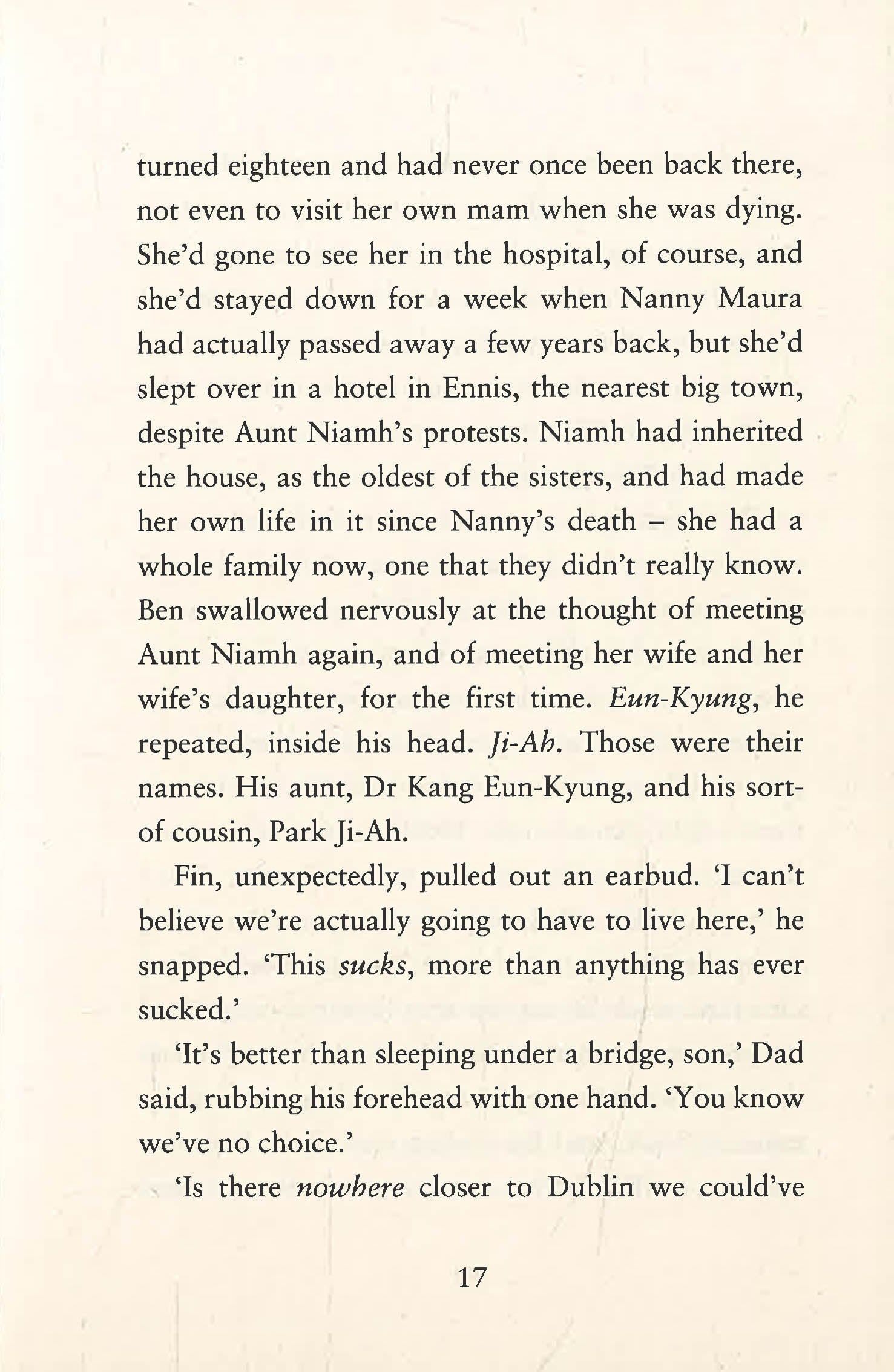 When Ben and his family have to leave Dublin and move into the remote house where his mother grew up, he's not optimistic about what lies ahead. For him and his brother Fin, it'll mean fitting in to life with his aunts and a cousin he doesn't even know.