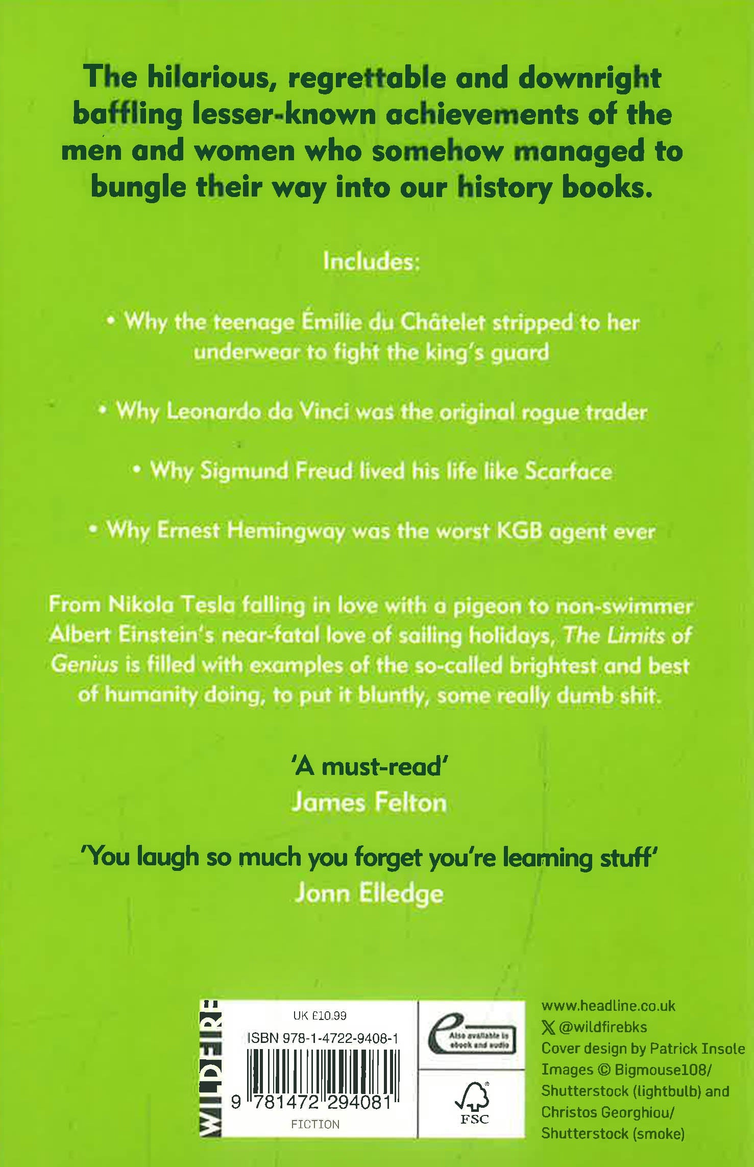 From Nikola Tesla falling in love with a pigeon to non-swimmer Albert Einstein''s near-fatal love of sailing holidays, The Limits of Genius is filled with examples of the so-called brightest and best of humanity doing, to put it bluntly, some really dumb shit. These are the stories that deserve to be told but never are: the hilarious, regrettable and downright baffling lesser-known achievements of the men and women who somehow managed to bungle their way into our history books.