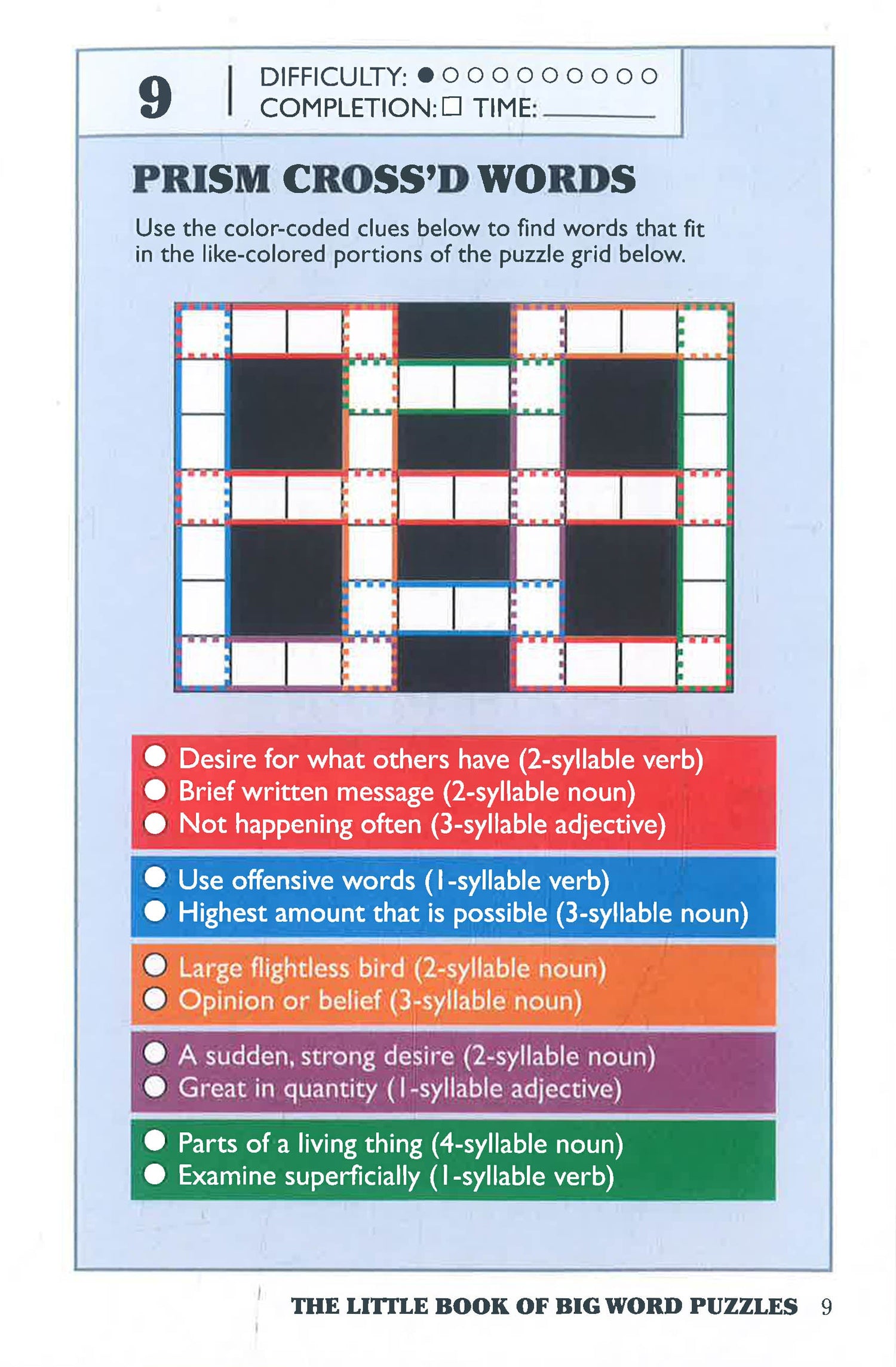 Here are more than 400 colorful puzzles—letters to unscramble, clues to link disparate syllables, clever riffs on word searches—to tickle the fancy of crossword fanatics and language lovers. Plus, they stretch your mind, sharpen your language skills, and even teach you a new word or two.