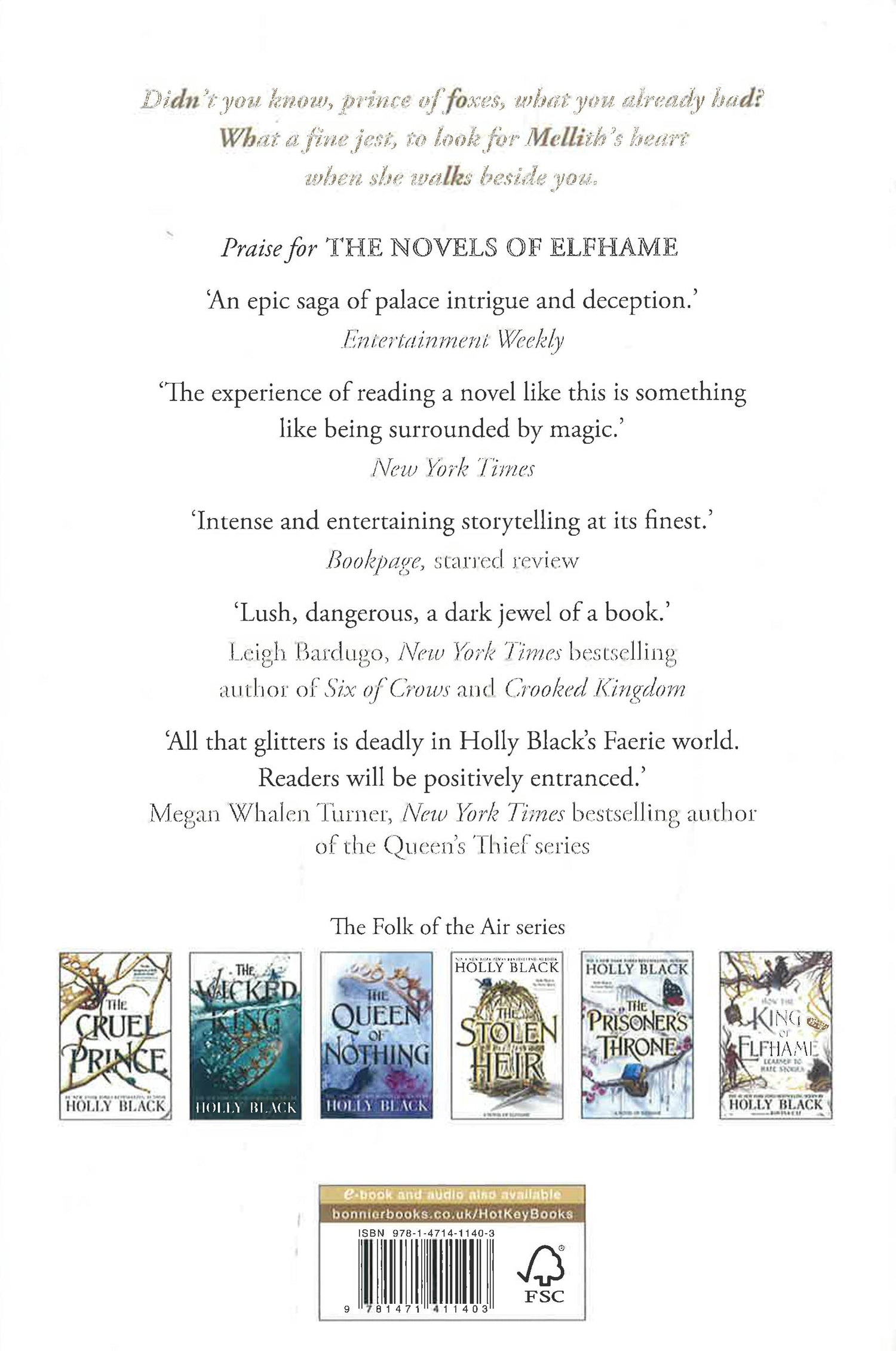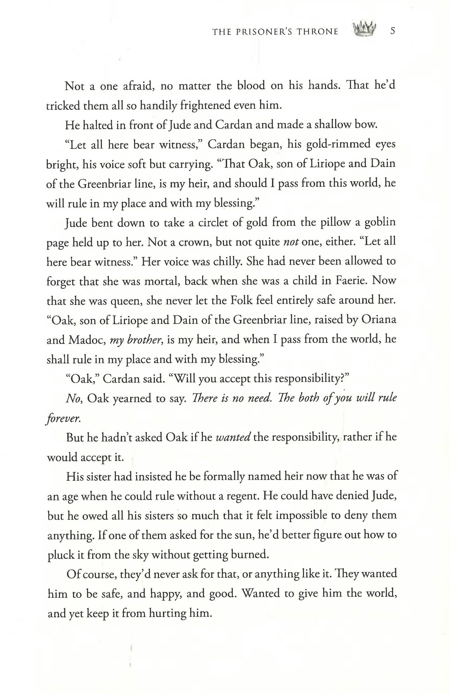 Prince Oak is paying for his betrayal. Imprisoned in the icy north and bound to the will of a monstrous new queen, he must rely on charm and calculation to survive. With High King Cardan and High Queen Jude ready to use any means necessary to retrieve their stolen heir, should Oak attempt to regain the trust of the girl he's always loved, or remain loyal to Elfhame and hand over the means to end her reign - even if it means ending Wren too...
