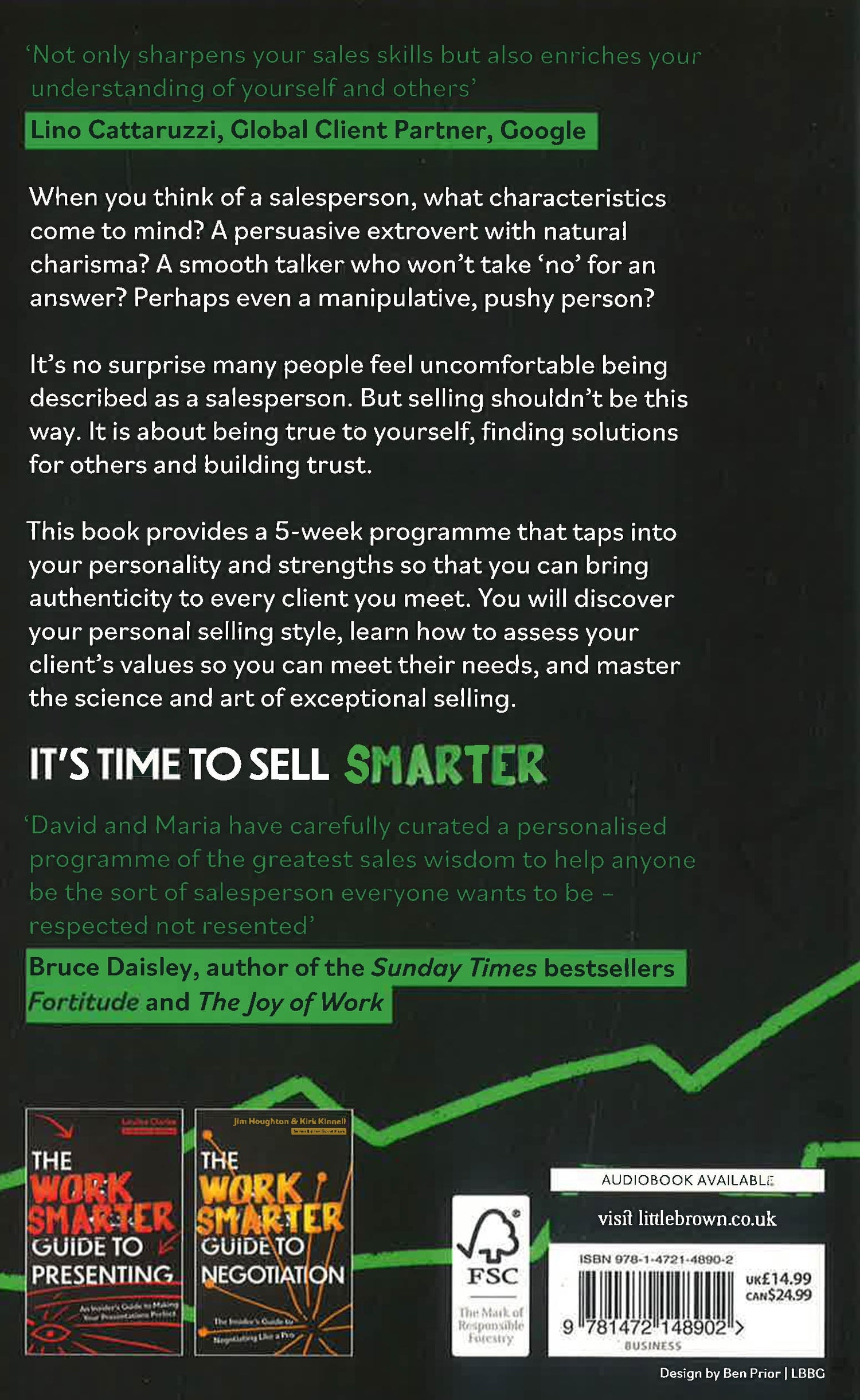 Each chapter concludes with a summary of do's and don'ts. The last chapter includes practical tools for analysing and planning your own self-development and business development. It will accelerate your understanding of and ability to sell by raising both your self-awareness and selling self-confidence.