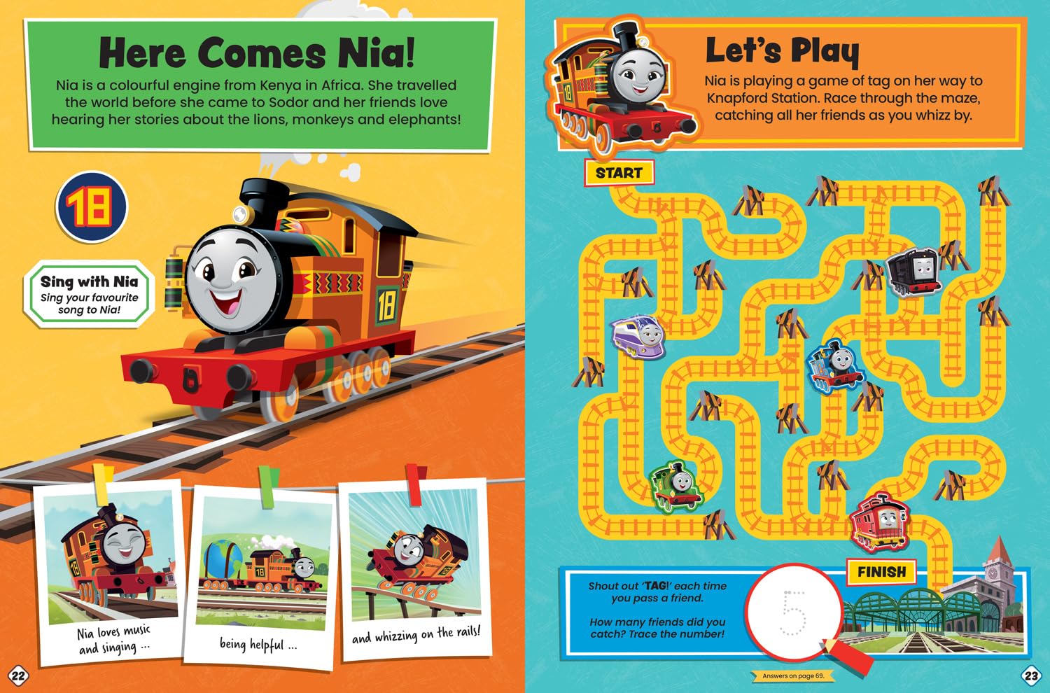 Featuring all your favourite engines including Thomas, Percy, Diesel, Nia, Kana and Bruno, there’s loads of fun content to entertain all Thomas fans including exciting stories, a boardgame, odd ones out, memory games, matching pairs, dot-to-dots, a timed challenge, tracing activities, spot the differences, follow the lines, profiles and lots of colouring, counting and early learning concepts fun.