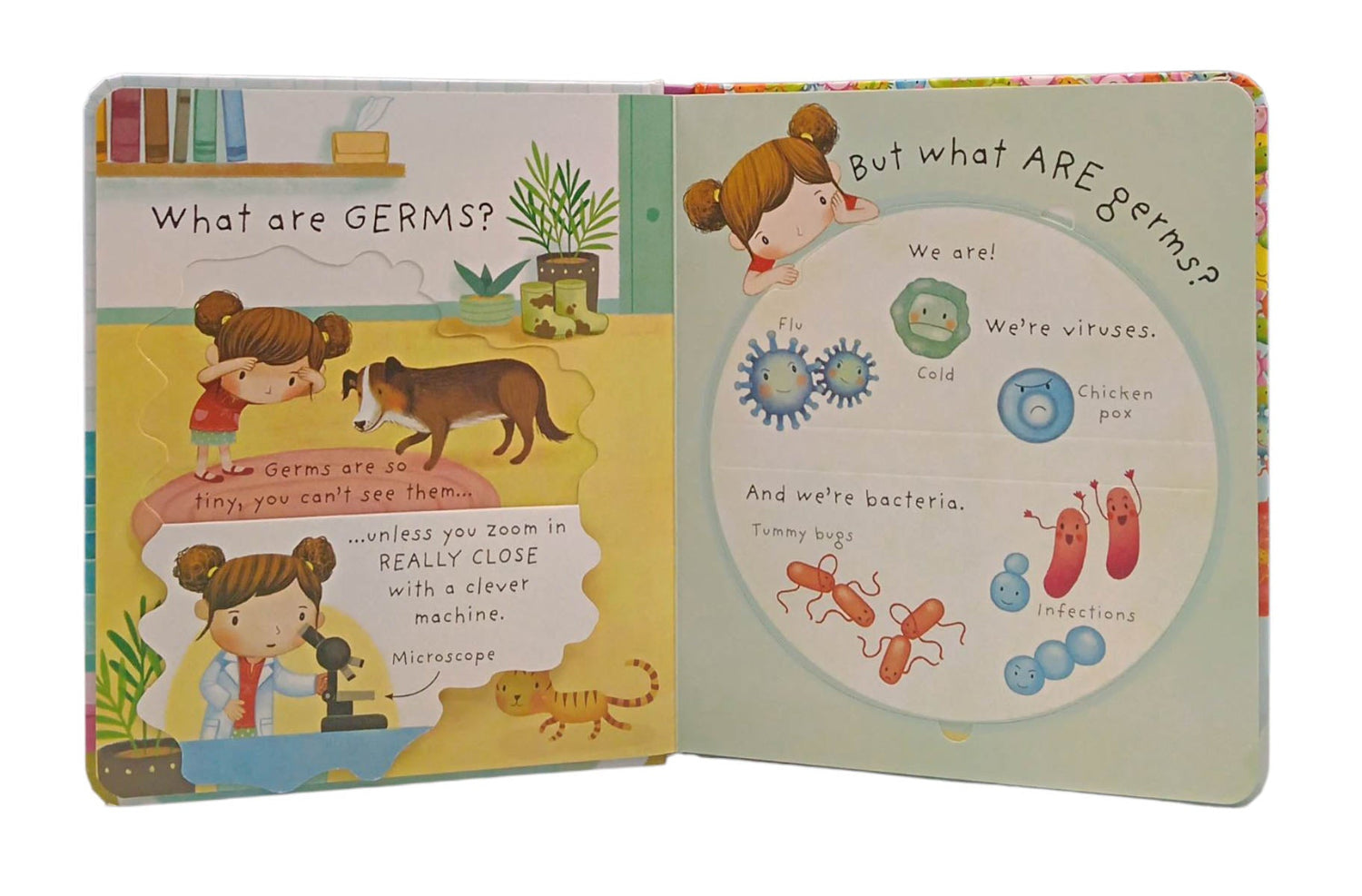 What are germs? How do they spread? And how do medicines help? Curious young children can take a closer look at those mischievous, microscopic bacteria and viruses in this fascinating introduction to germs and hygiene, with 30 flaps to lift and tips on hand-washing and staying healthy. Written with advice from Public Health England.