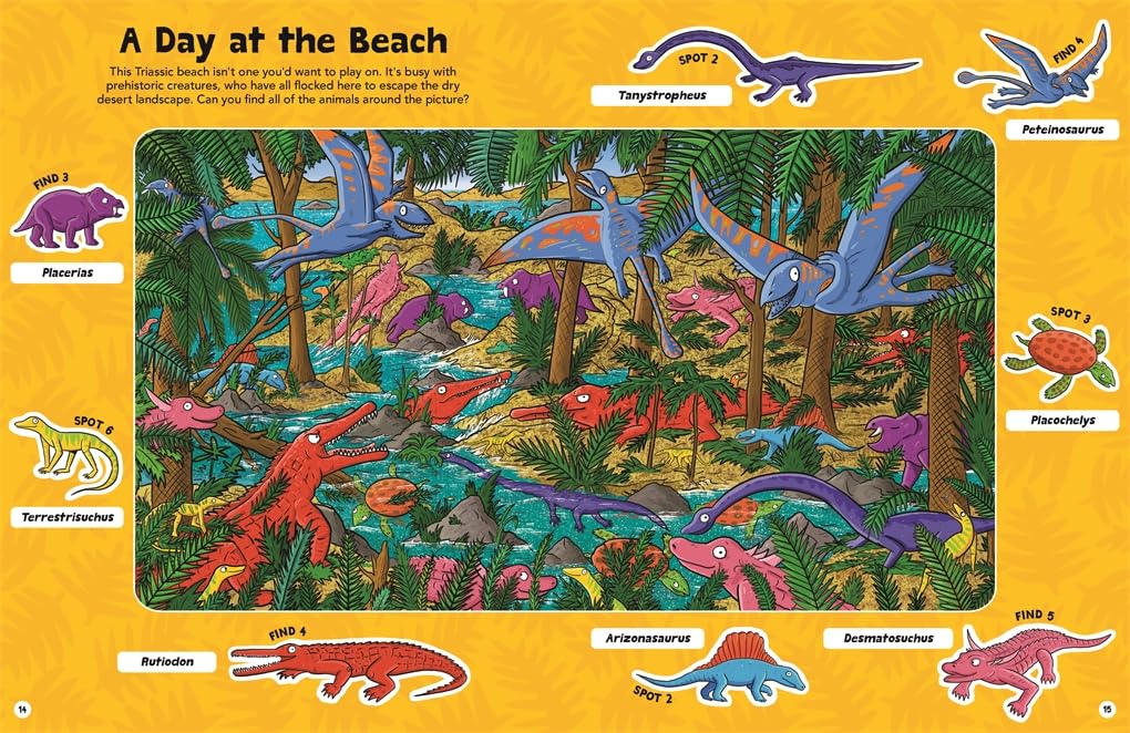 Dinosaurs are as popular as ever with young readers, and dino-fans will love this adventure through prehistory. Starting in the Permian period and moving all the way through to the Ice Age, each era is full of puzzles and facts. Find what prey a Dimetrodon is hunting, survive a raptor maze, learn how to draw a T. rex and much, much more. Join the dots, spot the differences, follow the lines, colour-in and search for loads of ancient animals in jam-packed seek-and-find scenes.