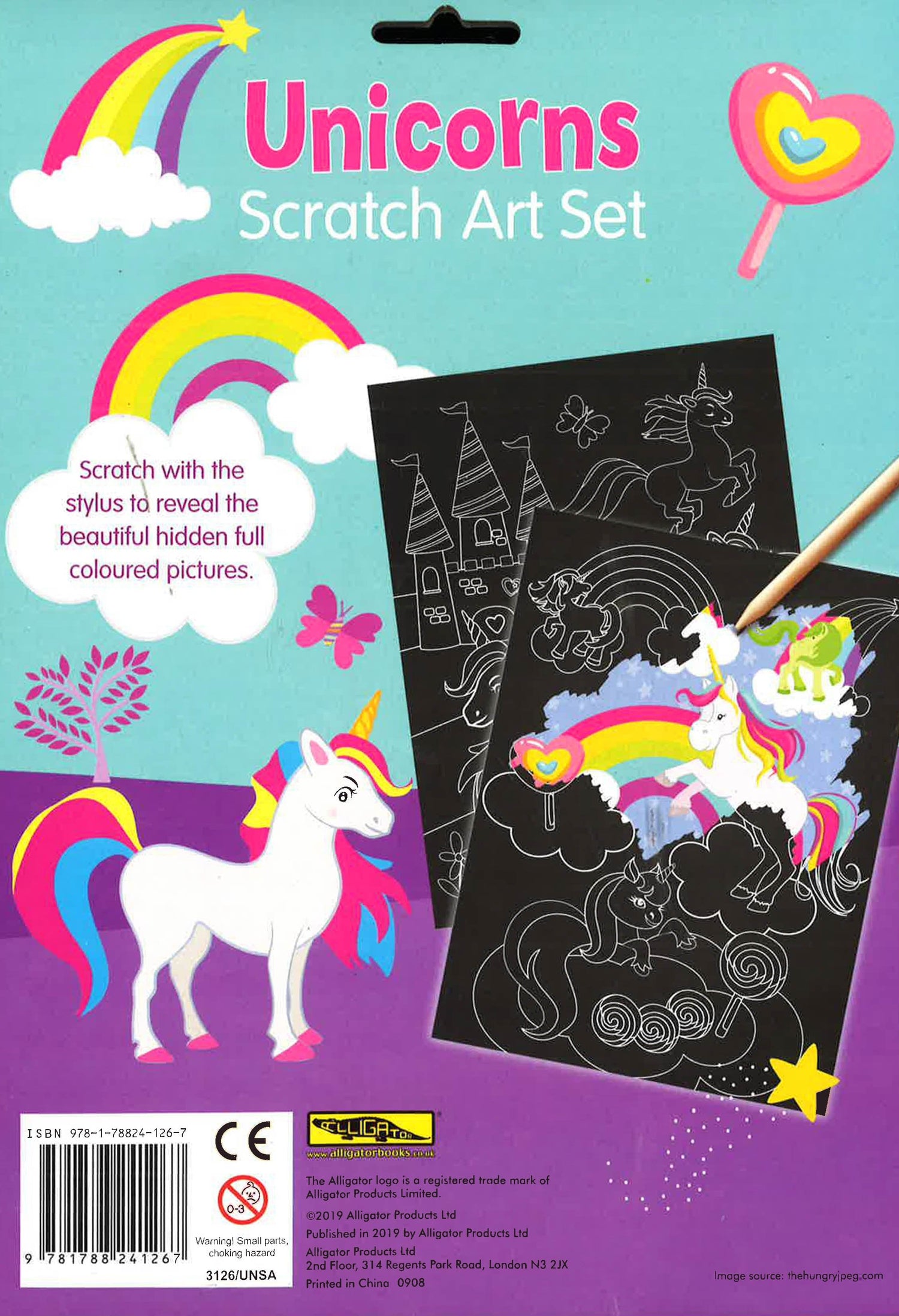 2 Exciting Hidden Pictures Wooden stylus to reveal the coloured pictures 3 Years+Have lots of fun with this Unicorn Scratch Art Activity Pack, ideal for keeping the unicorn fan in your family entertained. Perfect for rainy play or simply to enjoy in leisure time. Makes a great gift Similar priced Unicorn drawing &