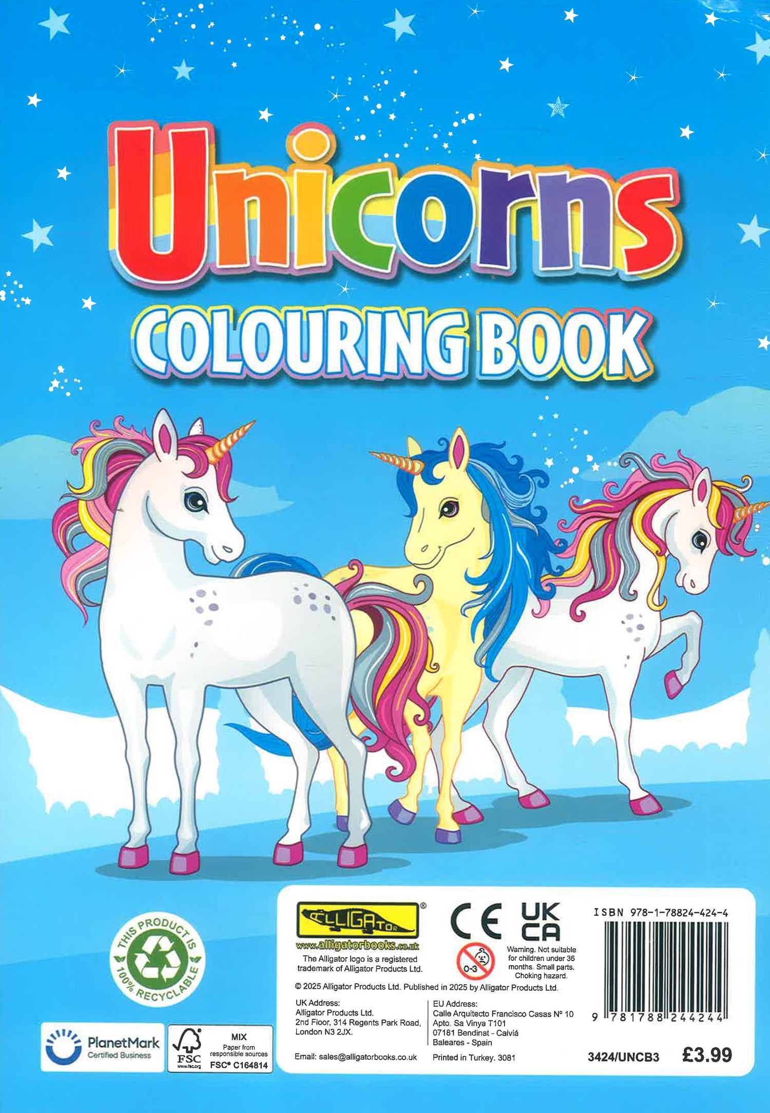 You can use the bright pretty colour to colour in the Unicorns. A book colouring for kids.