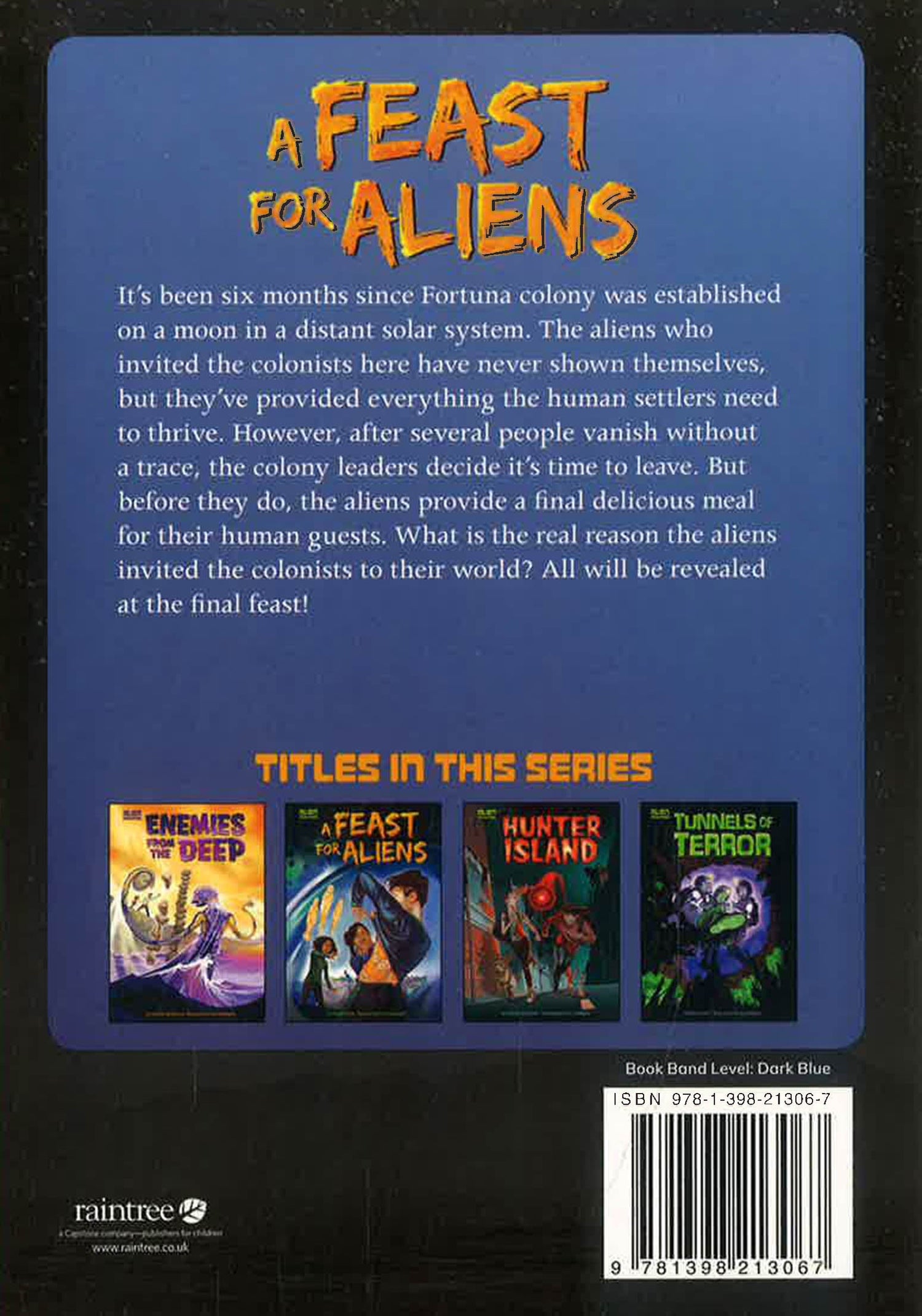 It's been six months since Fortuna colony was established on a moon in a distant solar system. The aliens who invited the colonists here have never shown themselves, but they've provided everything the human settlers need to thrive. However, after several people vanish without a trace, the colony leaders decide it's time to leave. But before they do, the aliens provide a final delicious meal for their human guests. What is the real reason the aliens invited the colonists to their world? All will be revealed at the final feast!