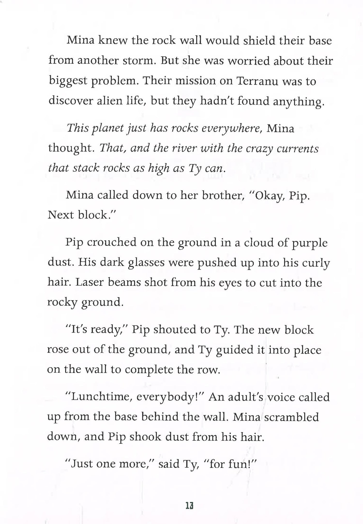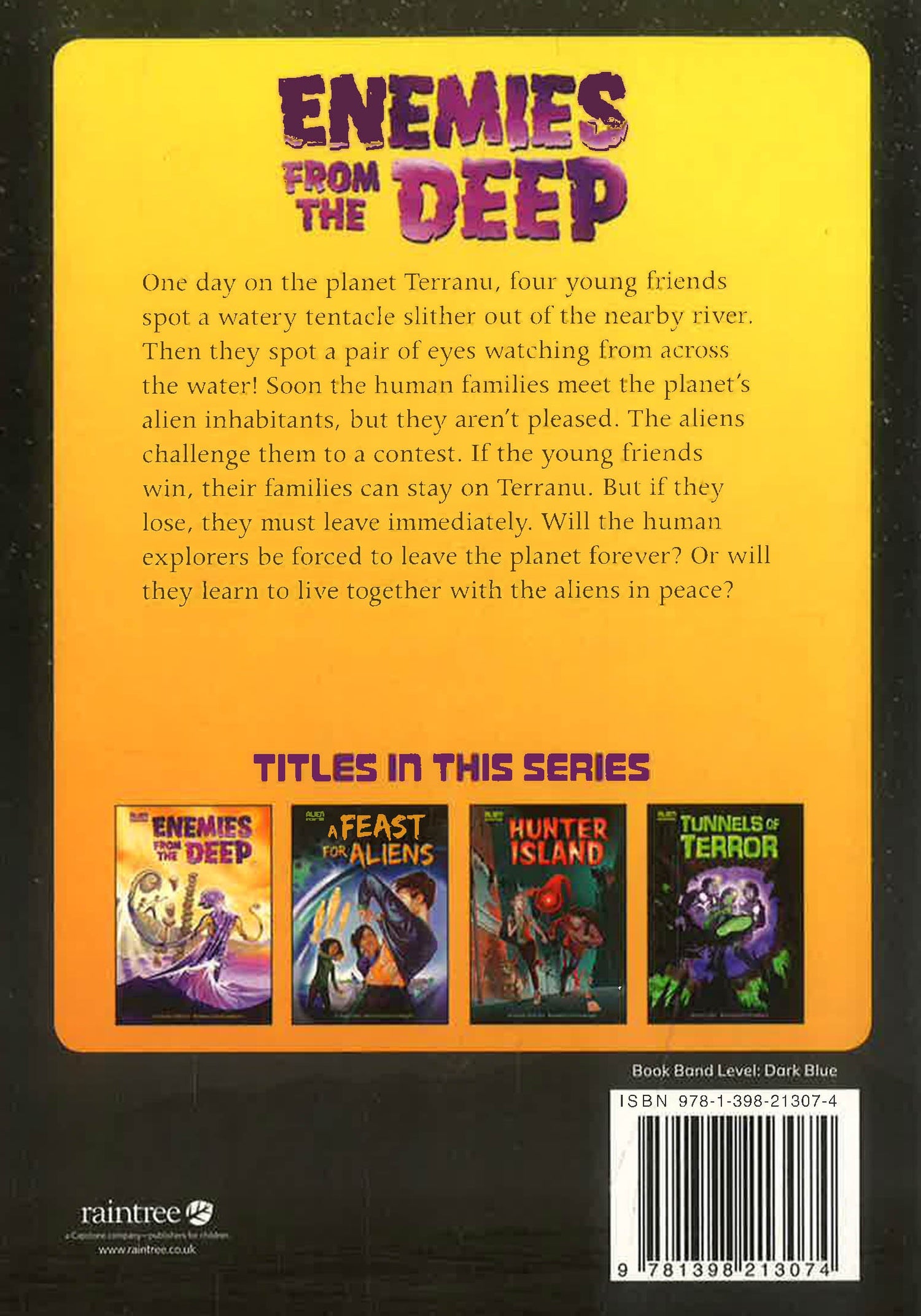 On the planet Terranu, two families have established a research base to look for extraterrestrial life. One day four young friends spot a watery tentacle slither out of the nearby river... and a pair of eyes watching from across the water! Soon the two families meet the planet’s natives, but they aren’t pleased by the humans’ presence. The aliens challenge them to a contest. If the humans win, they can stay on Terranu. But if they lose, they must leave immediately. It’s up to the young friends and their special powers to win the contest. Will their families be forced to leave the planet forever? Or will the humans and aliens learn to live together in peace?