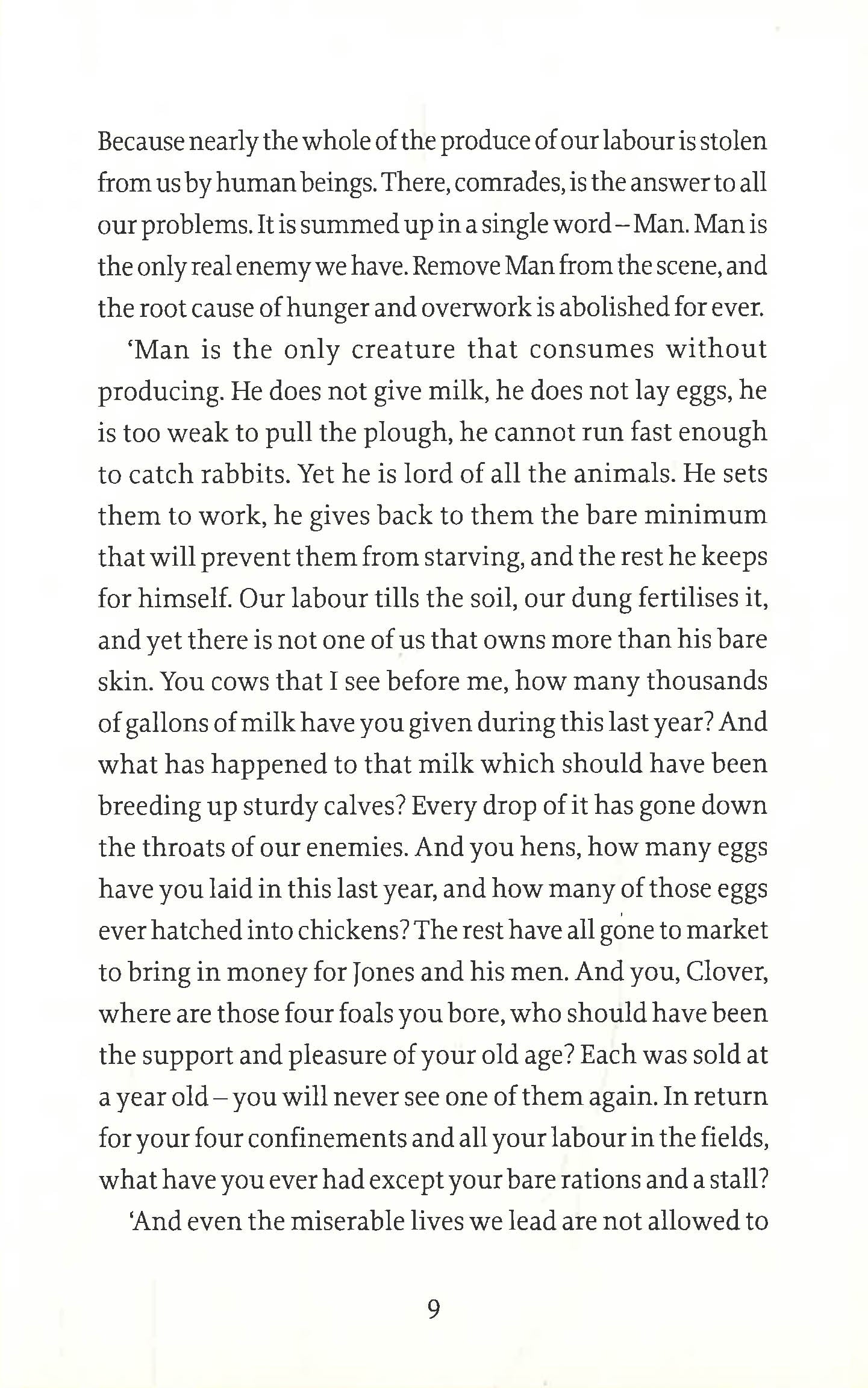 ‘Four legs good, two legs bad.’When the animals of Manor Farm overthrow Mr Jones, their drunkard farmer. The pigs (Napoleon and Snowball) mastermind a new regime – where all animals are equal and free. But as Napoleon and Snowball battle for power, it soon becomes apparent that the pigs secretly believe some animals are more important than others.
