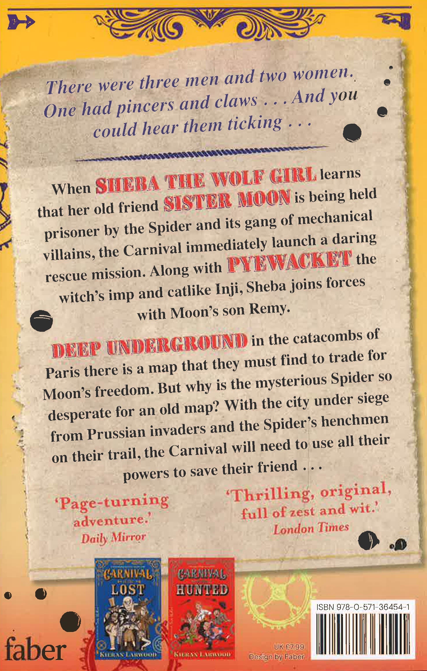 Deep underground in the catacombs of Paris there is a map, which they must find to trade for Moon's freedom. But who is this mysterious Spider? And why is she so desperate for an old map? With the city under siege from Prussian invaders and the Spider's henchmen on their trail, the Carnival will need to use all their powers to save their friend . . .