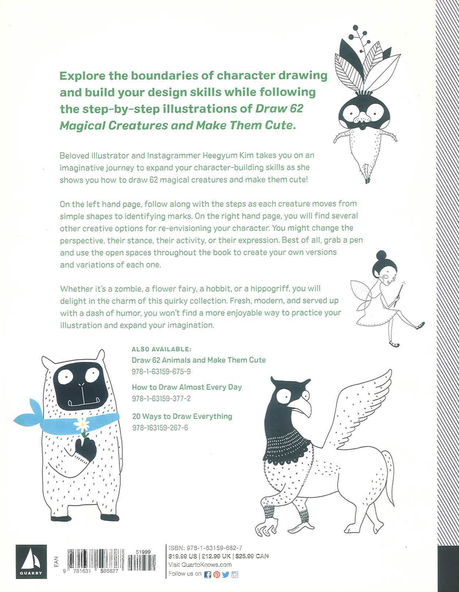 Popular illustrator and Instagrammer Heegyum Kim takes you on a magical journey to expand your creativity as she shows you how to draw a number of creatures, each starting with basic shapes and lines. Once you’re comfortable with a design, try one of several variations to make it cute—change the expression, sketch a new pose or activity, or add special features. Turn Bigfoot into a sleepy beast, and make Nessie a sassy monster.