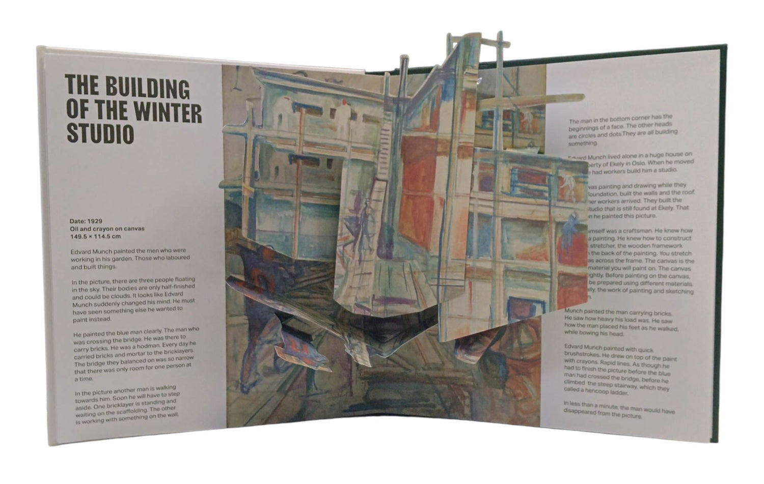 Edvard Munch was one of Modernism's most significant artists. He was active throughout more than sixty years; from the time he made his debut in the 1880s, right up until his death in 1944. Munch was part of the Symbolist movement in the 1890s, and a pioneer of expressionist art from the beginning of the 1900s onward. His tenacious experimentation within painting, graphic art, drawing, sculpture, photo and film has given him a unique position in Norwegian as well as international art history. For the first time you can experience Munch's most famous works of art as 3D pop-ups. The book showcases The Women on the Bridge, Woman with Poppies, The Building of the Winter Studio, Children in the Forest, The Yellow Log and the iconic Scream accompanied by explanatory texts and sketches by Munch. "The sheer effortlessness of Ersland's prose allows his words to move wherever they like - through images, into Munch's life and out into the world." Karl Ove Knausgaard