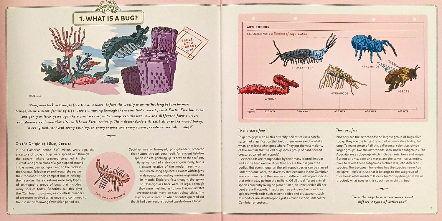 Leave no stone unturned with our explorer to uncover the fascinating world of bugs! Our six-foot-long timeline features over 100 bugs from their first appearance about 230 million years-ago through to their living descendants, and how they survived and thrived. Then join our explorer on his quest to find out as much as possible about these amazing creatures in his fascinating journal. Find out why they were so successful, who discovered the first one, how they support our environment, and more!