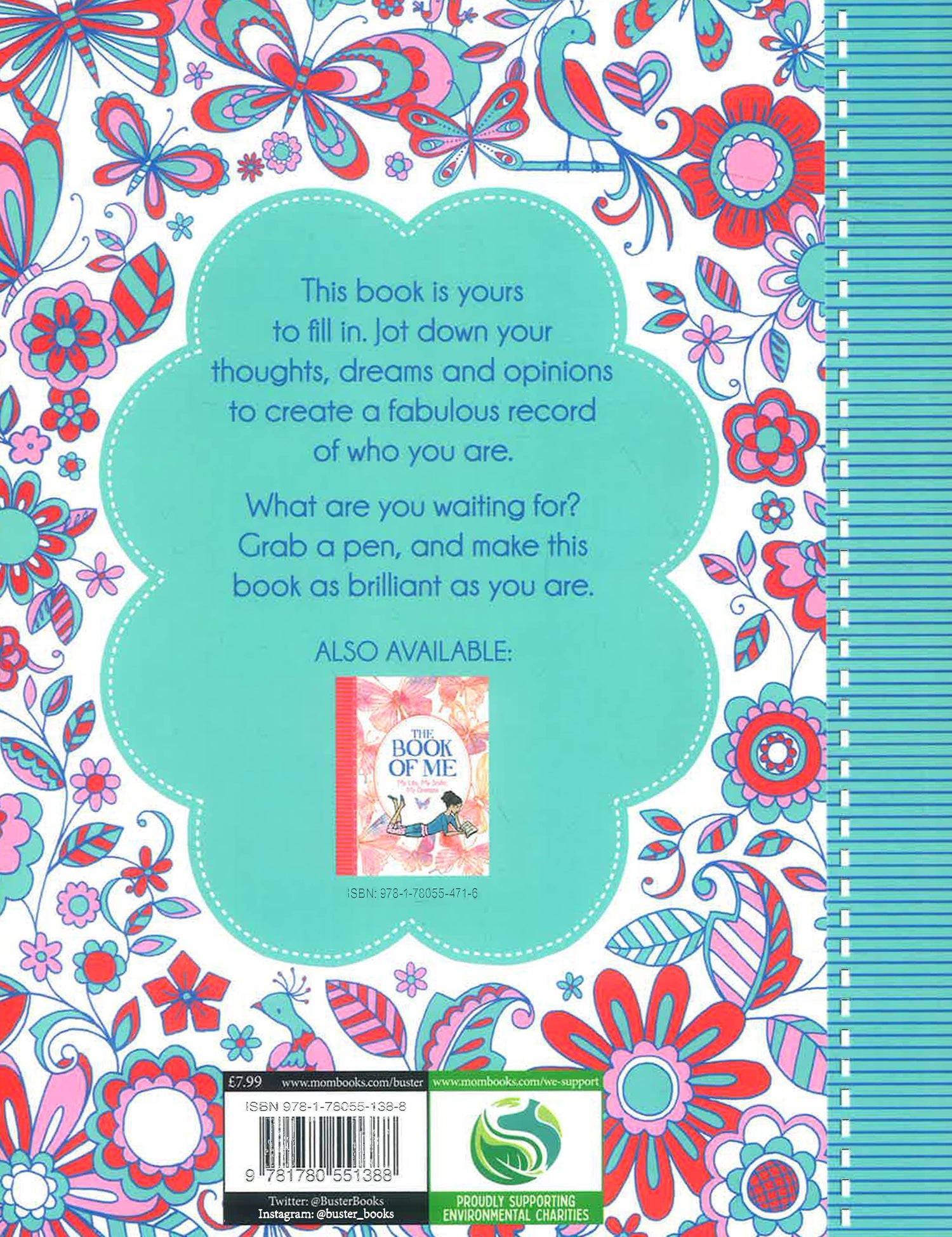 The perfect gift for children everywhere, this interactive journal enables readers to make a detailed record of exactly who they are, right here, right now. Packed with fun quizzes and fill-in sections that will help girls document their likes and dislikes, this journal records their physical characteristics, detail information about their friends, families, and hobbies, and encourages them to confess their hopes and dreams. Girls are guaranteed to enjoy and treasure All About Me and look back at it and smile in years to come.