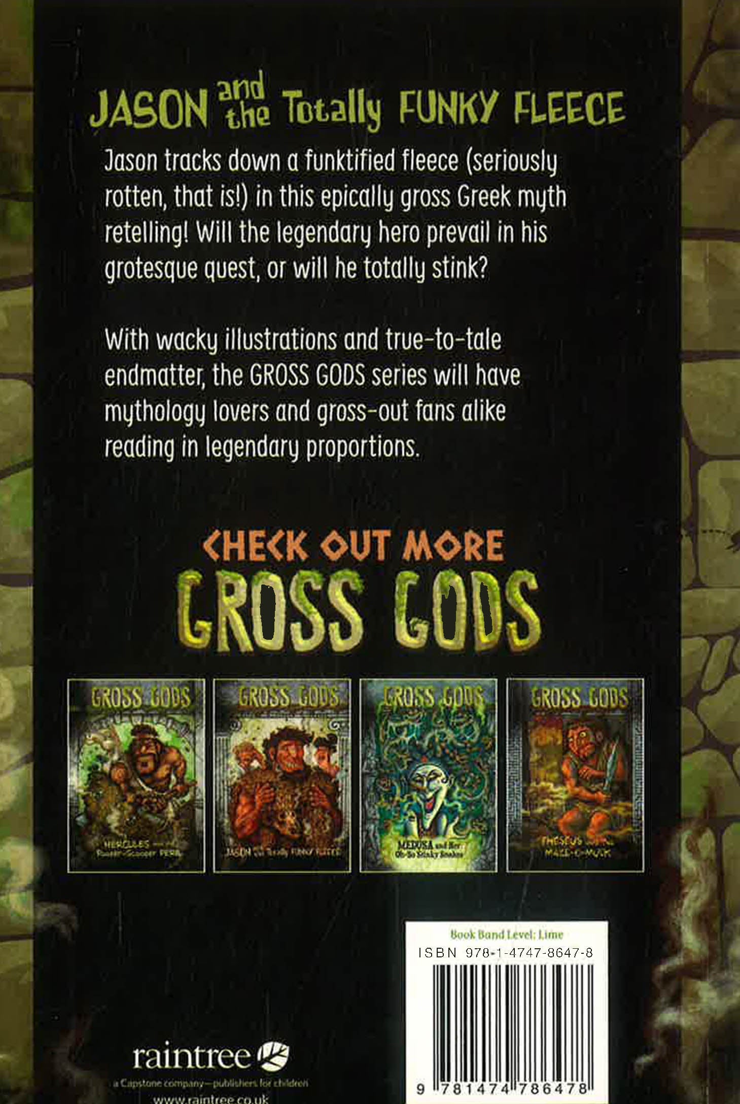 Jason tracks down a funktified fleece (like, seriously rotten, that is!) in this epically gross Greek myth retelling! Will the legendary hero prevail in his grotesque quest, or will he totally stink? With wacky illustrations, true-to-tale back matter, and introductions by Michael Dahl himself, THE GROSS GREEK GODS series will have mythology lovers and gross-out fans alike reading in legendary proportions.
