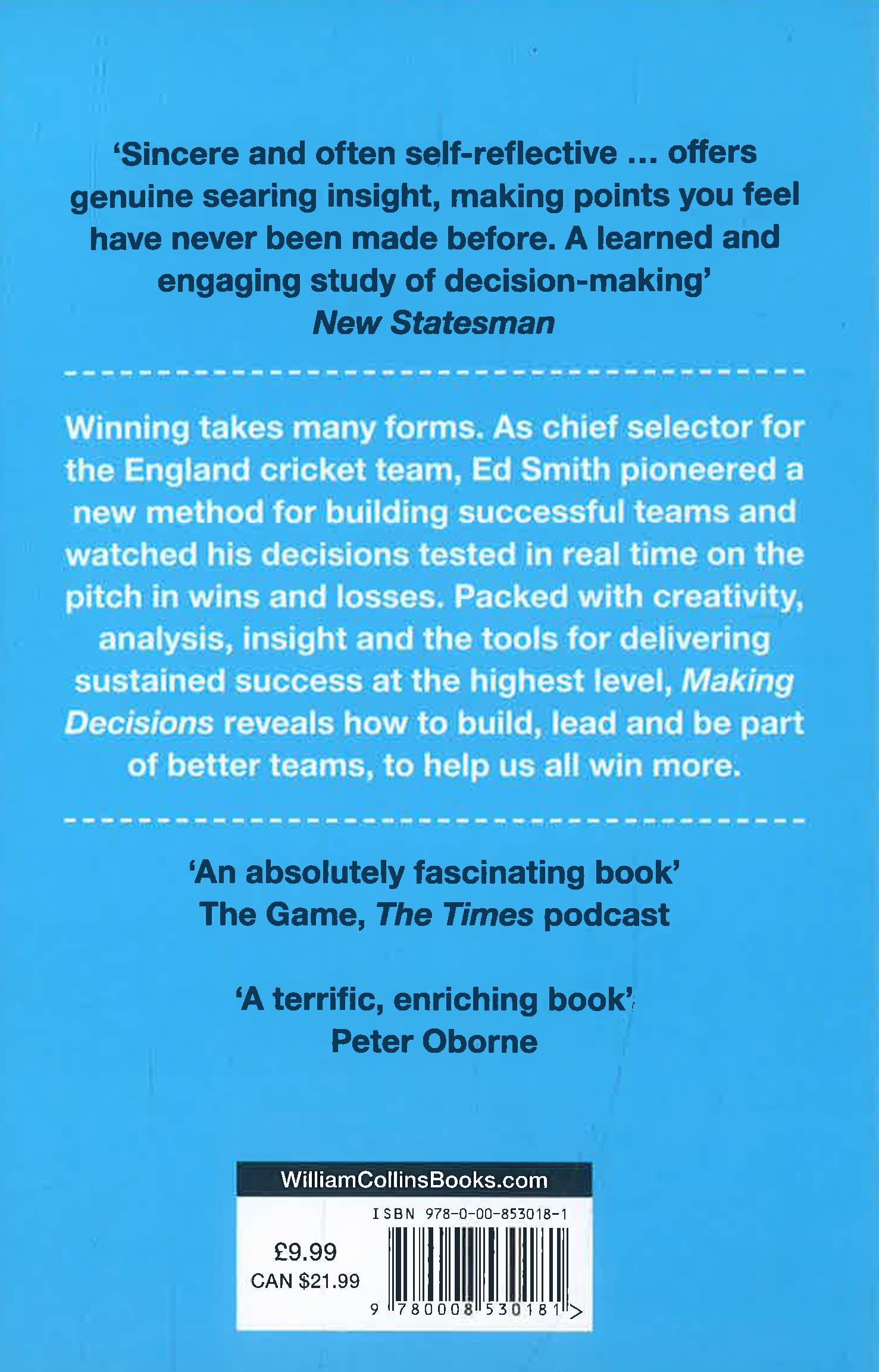 Sharing for the first time the tools he introduced as England selector, Smith’s book captures the immediacy of life at the sharp end, while also exploring frameworks from the top levels of sports, business and the arts. Decision-making is revealed as a creative enterprise, not a reductive system.