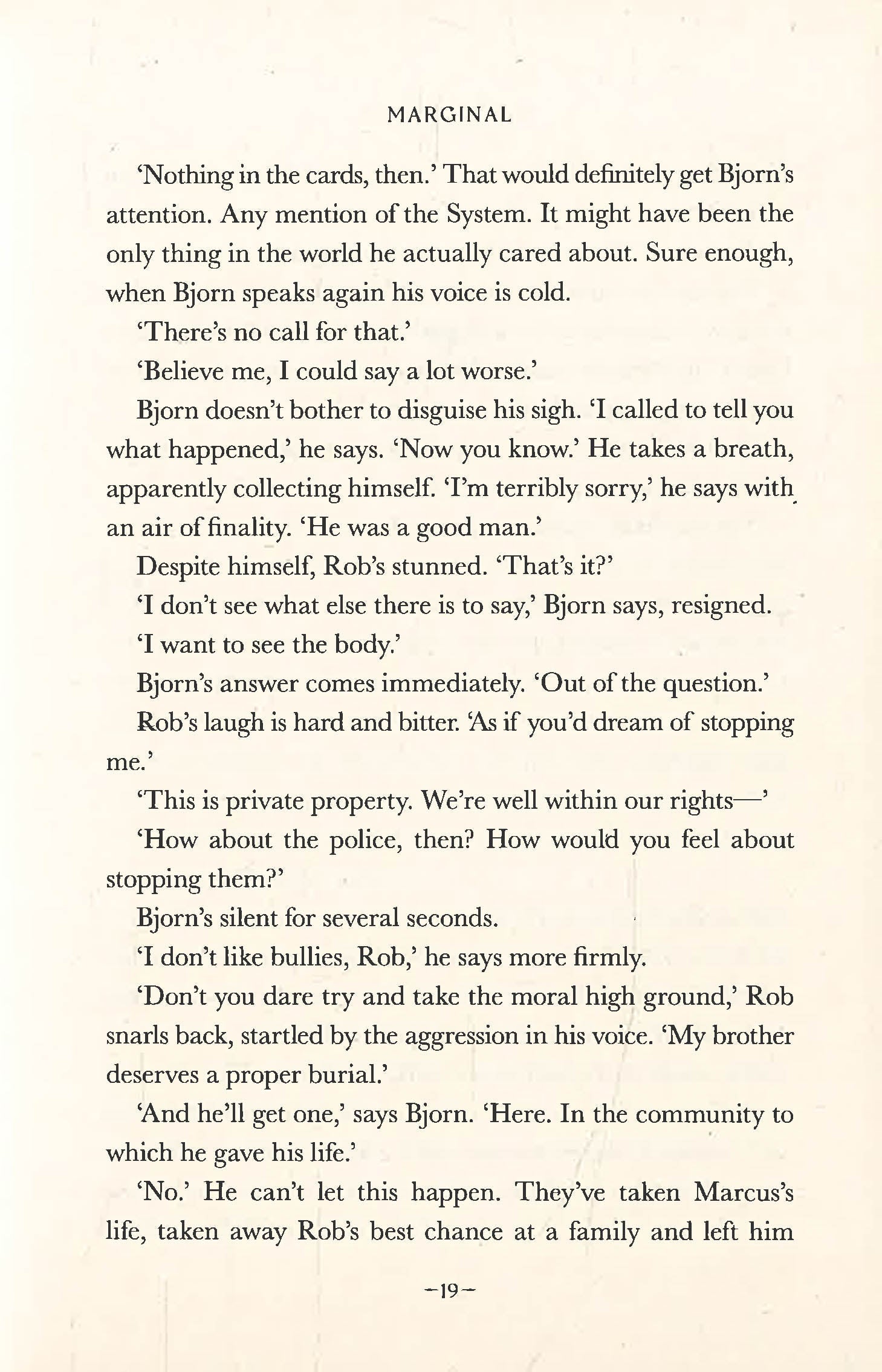 Rob is determined to go up north to the compound to see Marcus laid to rest, but more importantly, to get to the bottom of what killed him. Because Rob has been waiting for the Systematics to make a mistake, for their charismatic leader Bjorn Thrissell to show his true colours so that Rob can make their crimes public and bring them down for good.