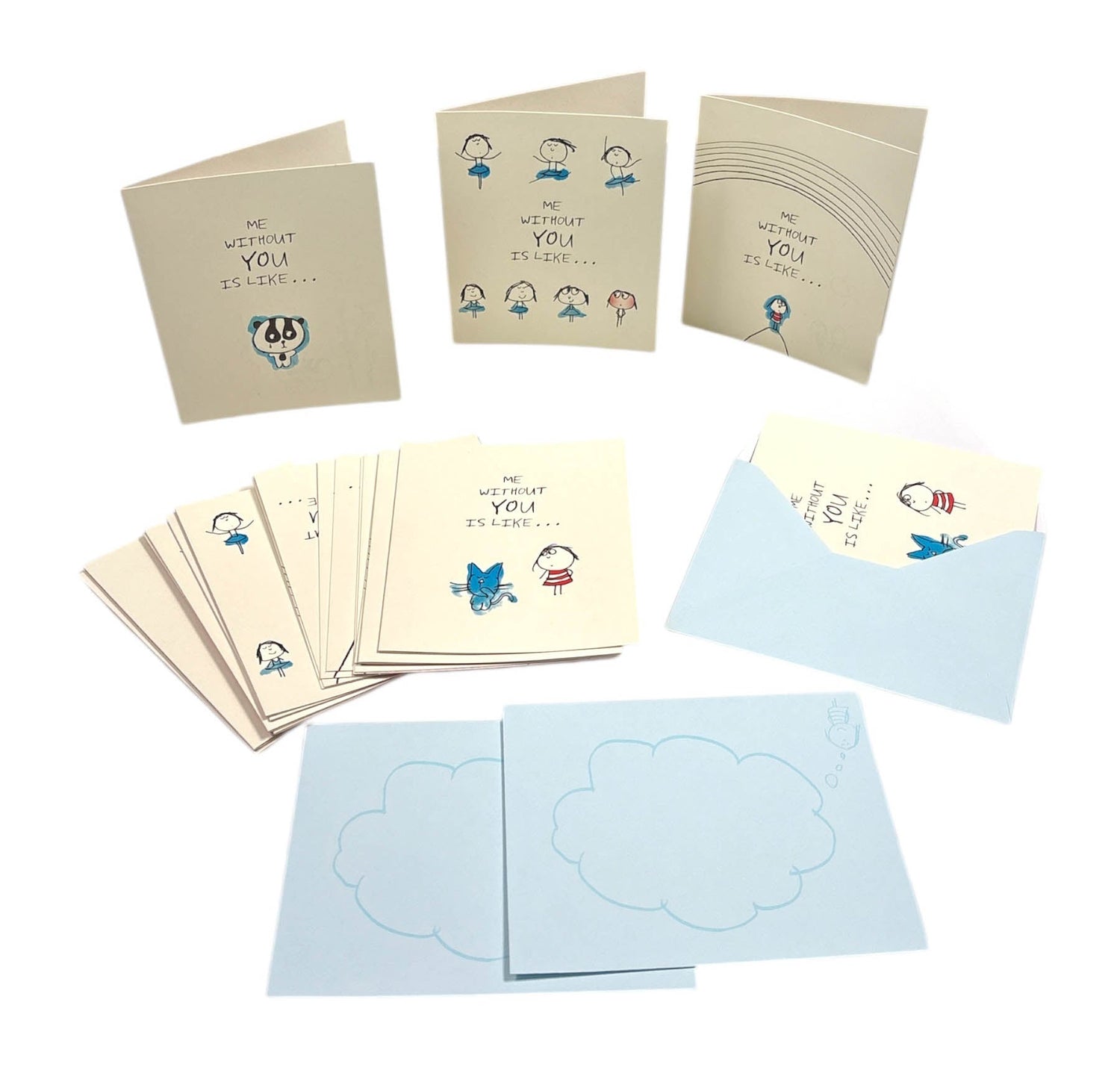 Send a little love-to friends, family, or anyone who could use a sweet sentiment-with these adorable notecards featuring the acclaimed art of Me Without You.