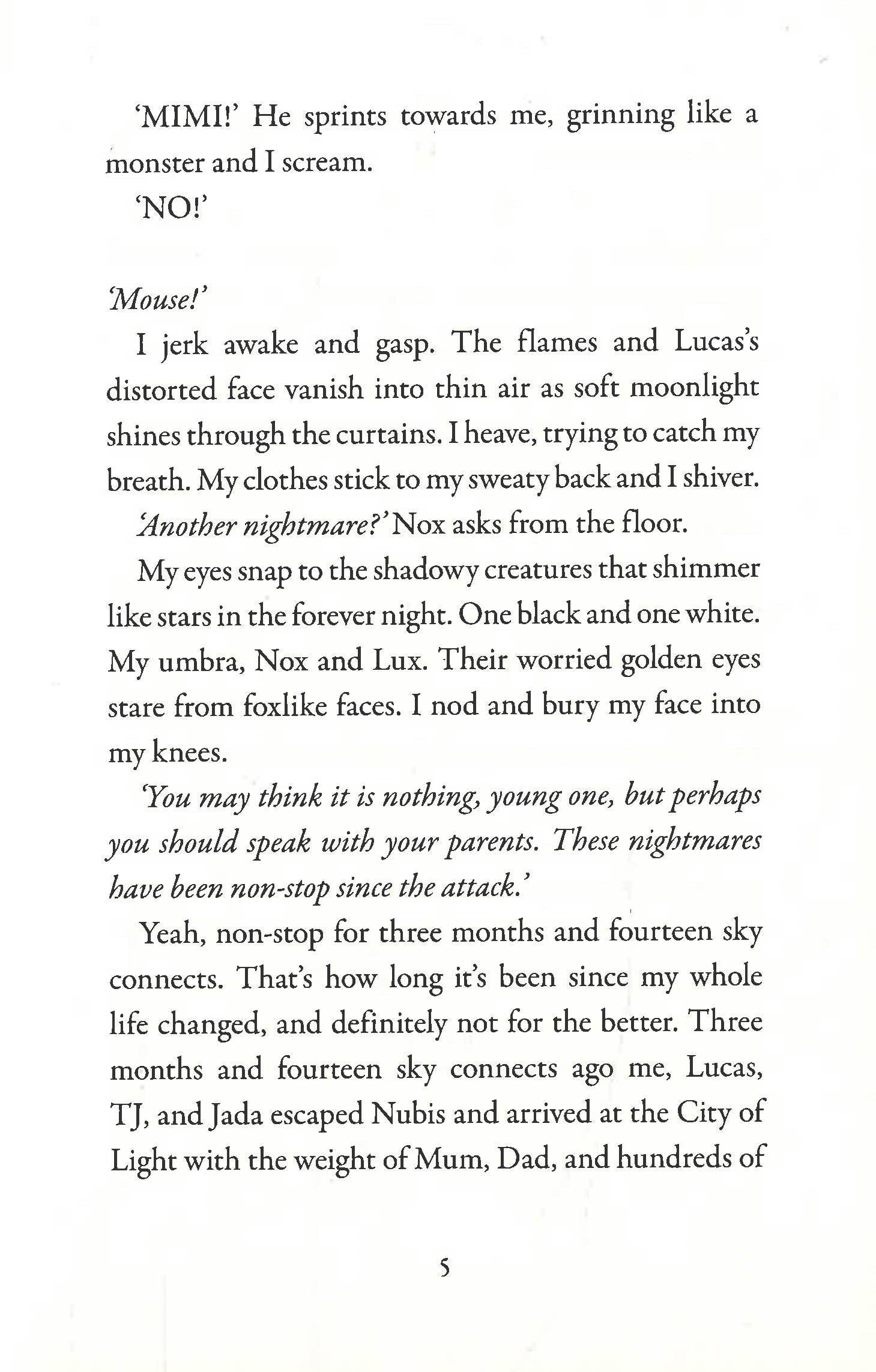 The Elite are imprisoned, the Reaper King is once again banished from the world and the city of Nubis is trying to return to normal. So is Mia, but it's not so easy. Coming to terms with new powers and being the tamer of two umbra, she's also plagued by nightmares. Is the fear all in her imagination? Or are the agents of darkness somehow planning another assault? Once again, Mia's skills and resilience will be tested to their limit.