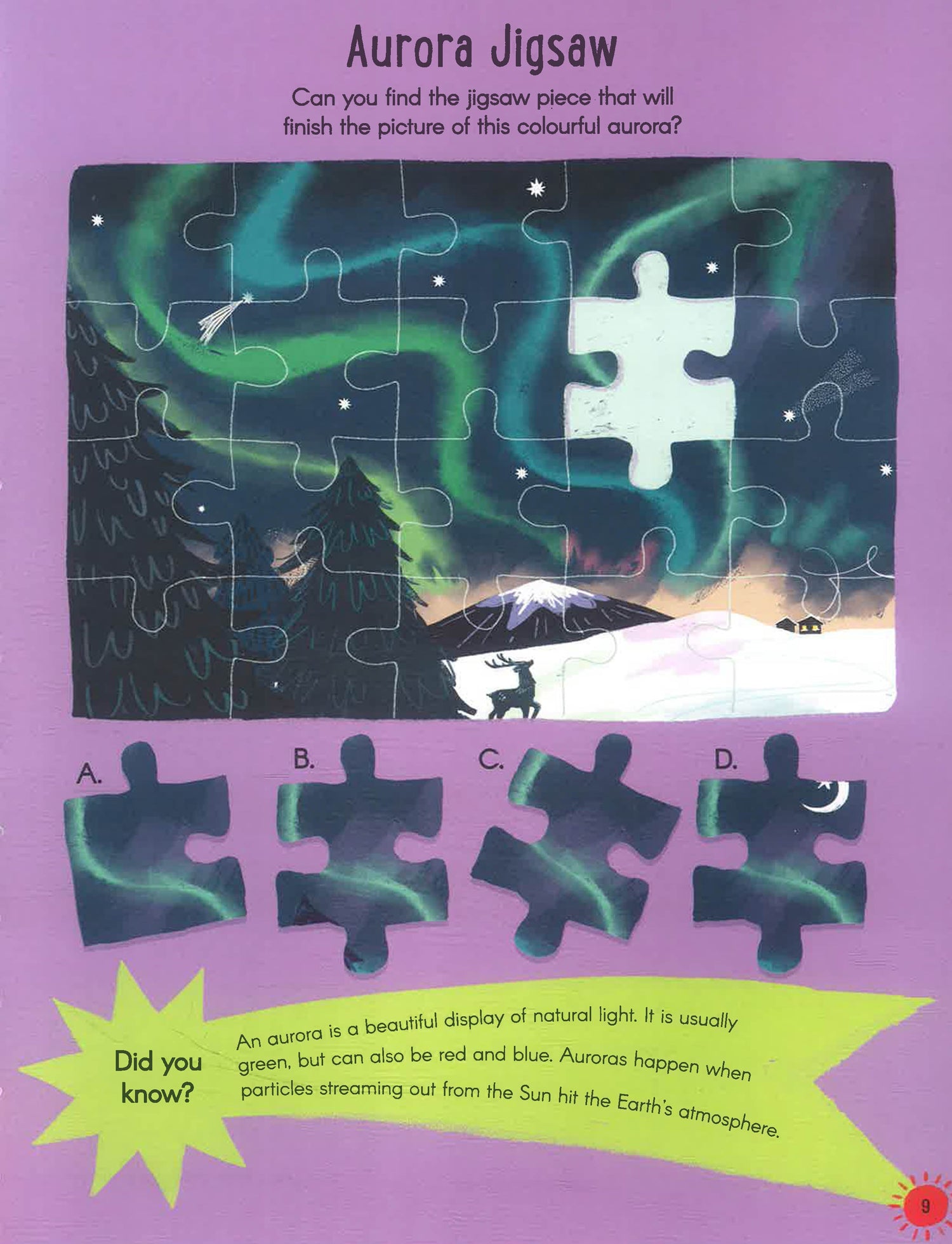 Work out which jigsaw piece completes the picture of the aurora, follow the river maze to the lake, count the number of shooting stars in the sky and much more. Each challenge is accompanied by a fascinating fact, so children can learn while they puzzle. This book is a fun, gentle introduction to geography and the science of our incredible planet.